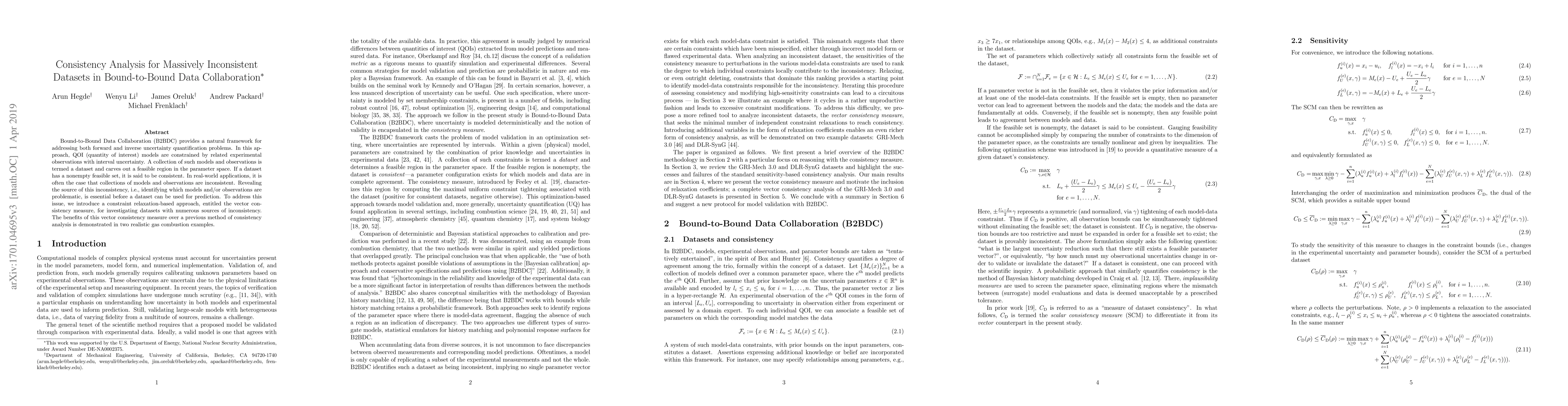 This research introduces a constraint relaxation-based method called vector consistency measure to analyze inconsistent datasets in Bound-to-Bound Data Collaboration. It demonstrates improved performance over previous methods using realistic gas combustion examples.