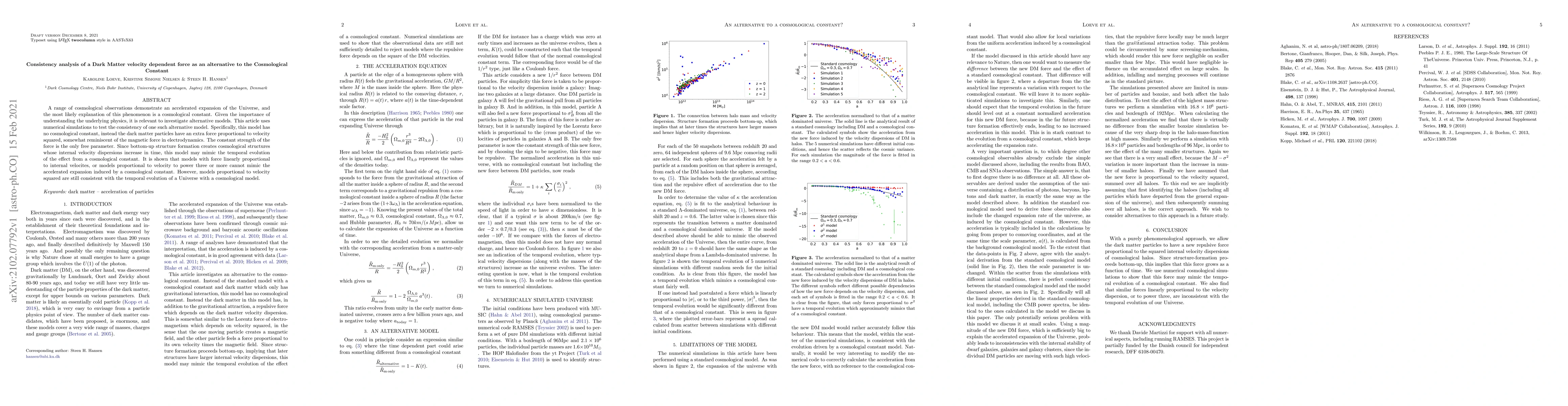 This paper investigates an alternative to the cosmological constant by proposing a velocity-dependent force for dark matter particles. Numerical simulations show that a force proportional to the square of velocity can mimic the accelerated expansion of the universe, while higher-power velocity dependencies fail to do so.