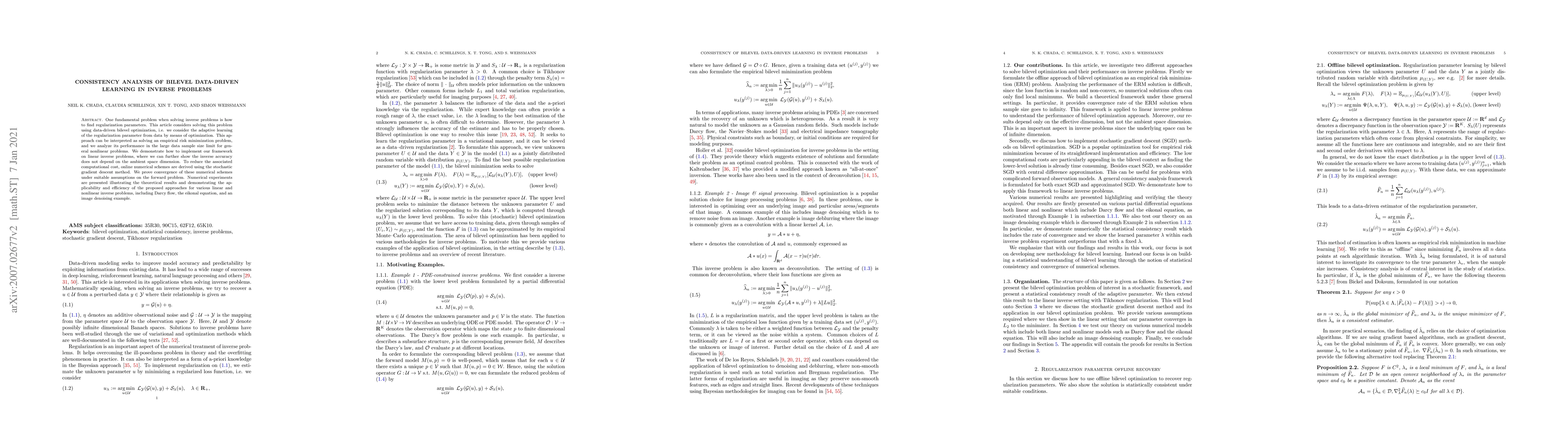 This paper investigates the consistency of bilevel data-driven learning for determining regularization parameters in inverse problems, employing optimization techniques. It demonstrates the approach's effectiveness and computational efficiency through theoretical analysis and numerical experiments on linear and nonlinear inverse problems.