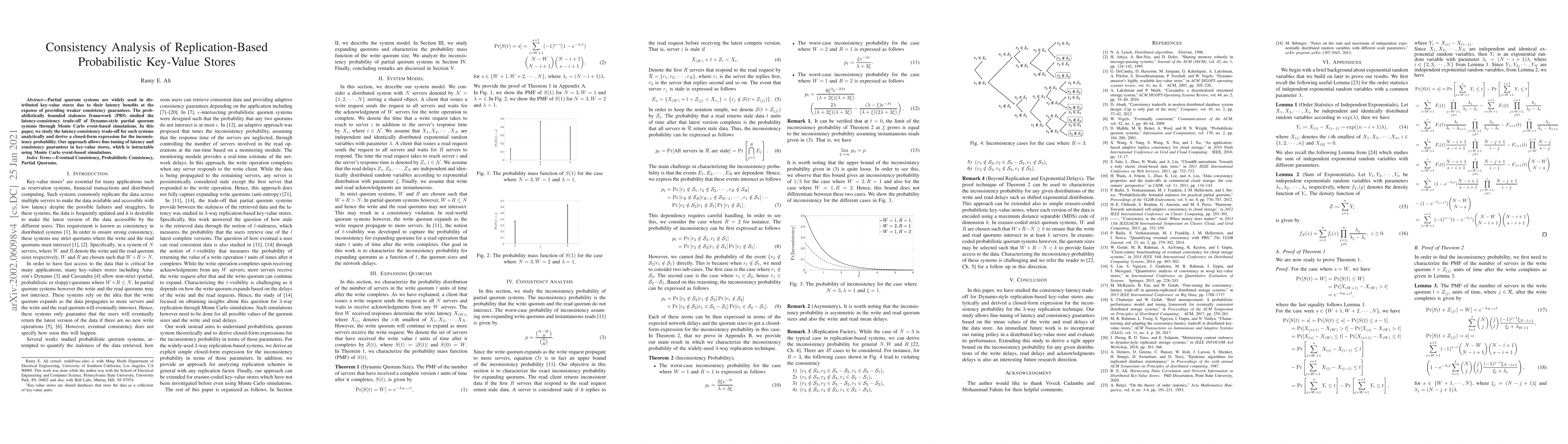 This paper analytically investigates the latency-consistency trade-off in replication-based probabilistic key-value stores, deriving a closed-form expression for inconsistency probability. This approach enables precise tuning of latency and consistency, surpassing the limitations of Monte Carlo simulations.