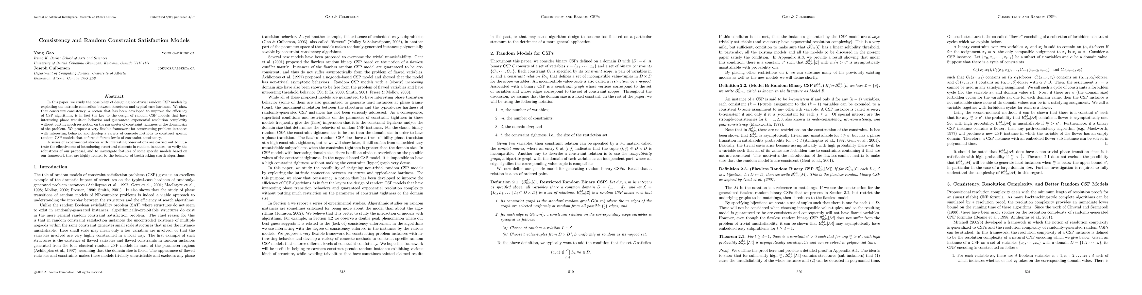 Researchers designed a framework for creating random constraint satisfaction problems (CSPs) with interesting behavior, leveraging structural elements to improve consistency and efficiency. Their approach enables the creation of CSP models with guaranteed exponential resolution complexity.