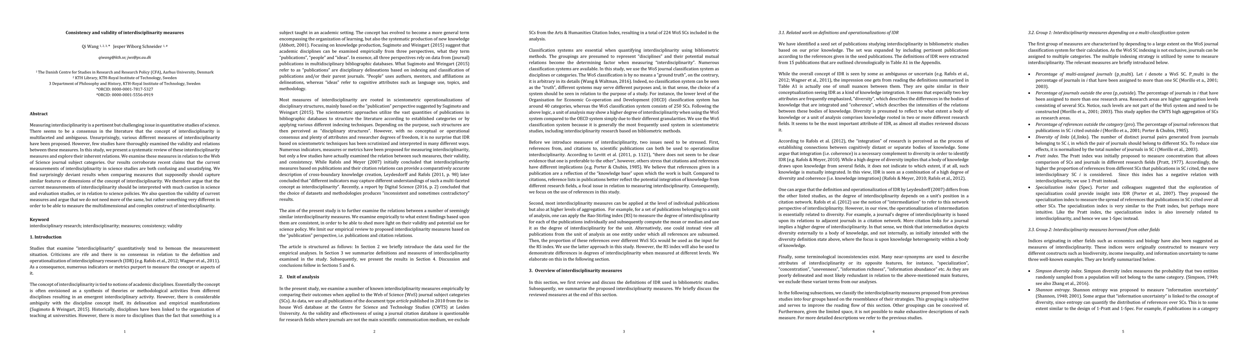 This study systematically reviews various measures of interdisciplinarity, finding significant inconsistencies and questioning their validity. It concludes that current metrics are inadequate and calls for fundamentally different approaches to accurately capture the multifaceted nature of interdisciplinarity in science studies.
