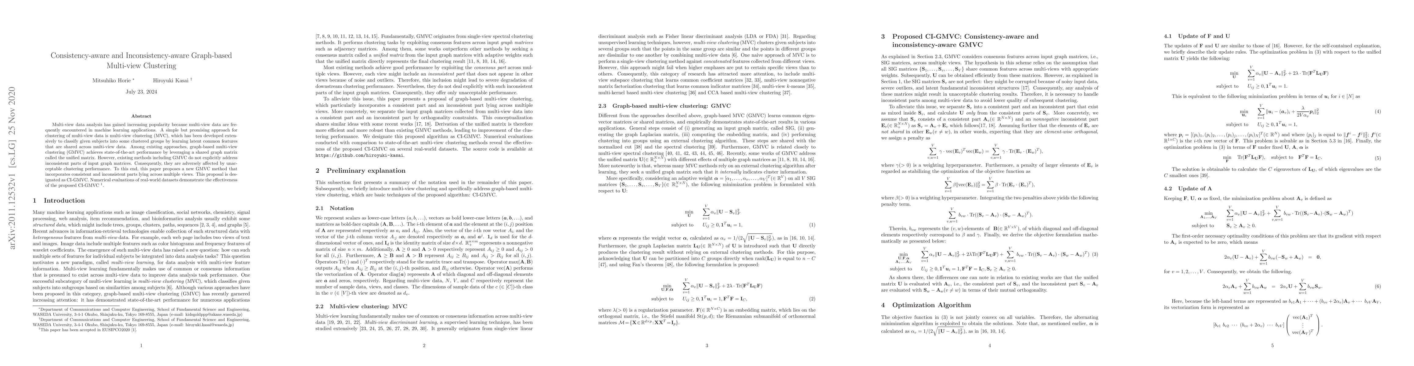 This paper introduces CI-GMVC, a novel graph-based multi-view clustering method that explicitly addresses both consistent and inconsistent parts of input graph matrices to improve clustering performance. Numerical evaluations on real-world datasets demonstrate the effectiveness of the proposed approach.