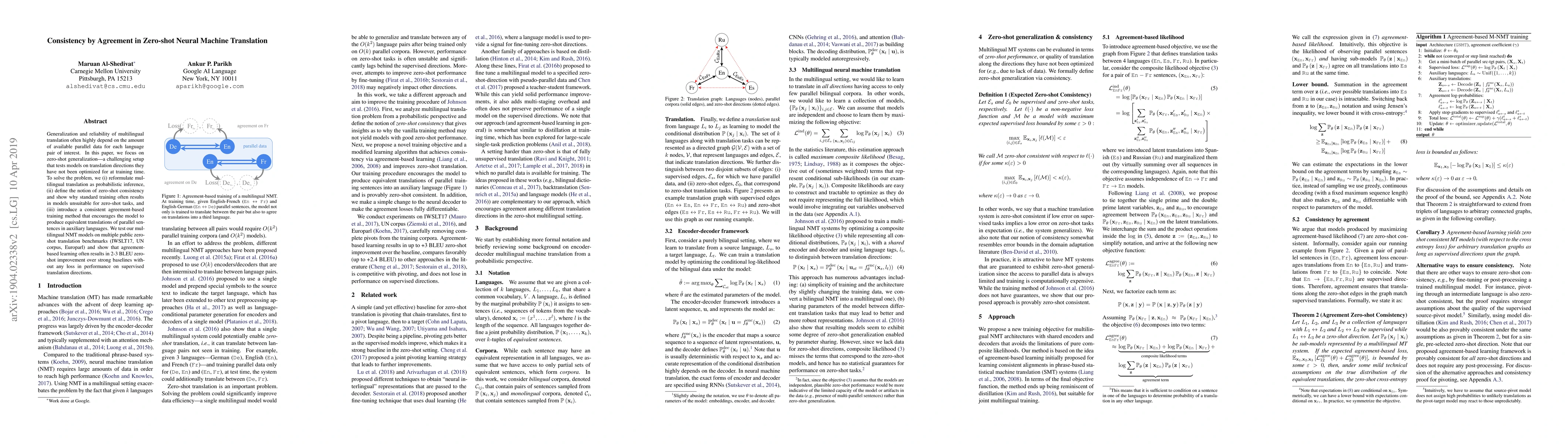 Researchers developed a new training method for neural machine translation that improves performance on zero-shot translations without sacrificing performance on supervised tasks. This approach achieves 2-3 BLEU score improvements over strong baselines.