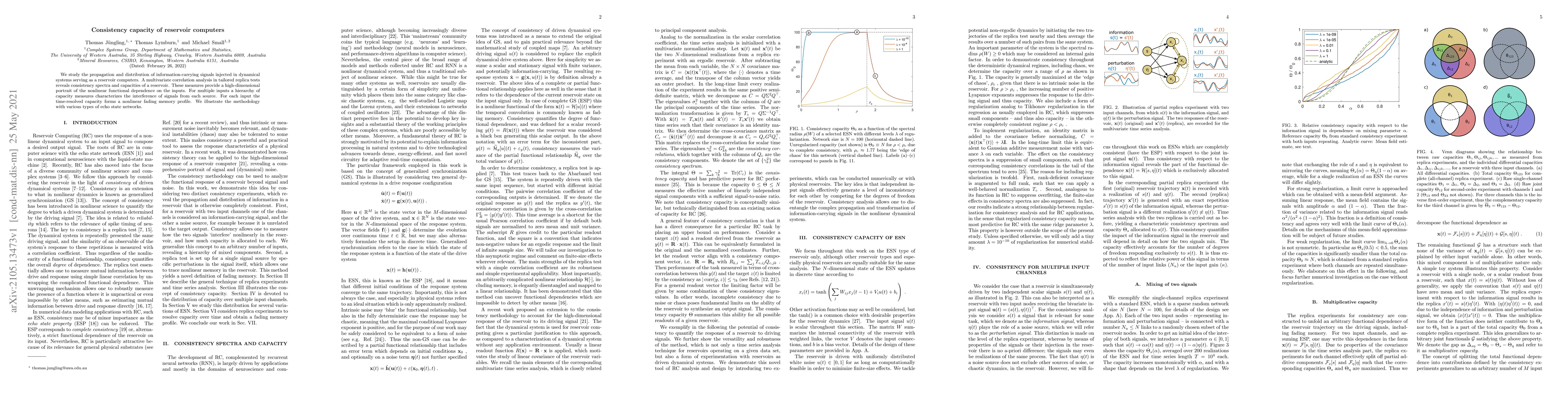 We study the propagation and distribution of information-carrying signals injected in dynamical systems serving as a reservoir computers. A multivariate correlation analysis in tailored replica tests reveals consistency spectra and capacities of a reservoir. These measures provide a high-dimensional portrait of the nonlinear functional dependence on the inputs. For multiple inputs a hierarchy of capacity measures characterizes the interference of signals from each source. For each input the time-resolved capacity forms a nonlinear fading memory profile. We illustrate the methodology with various types of echo state networks.