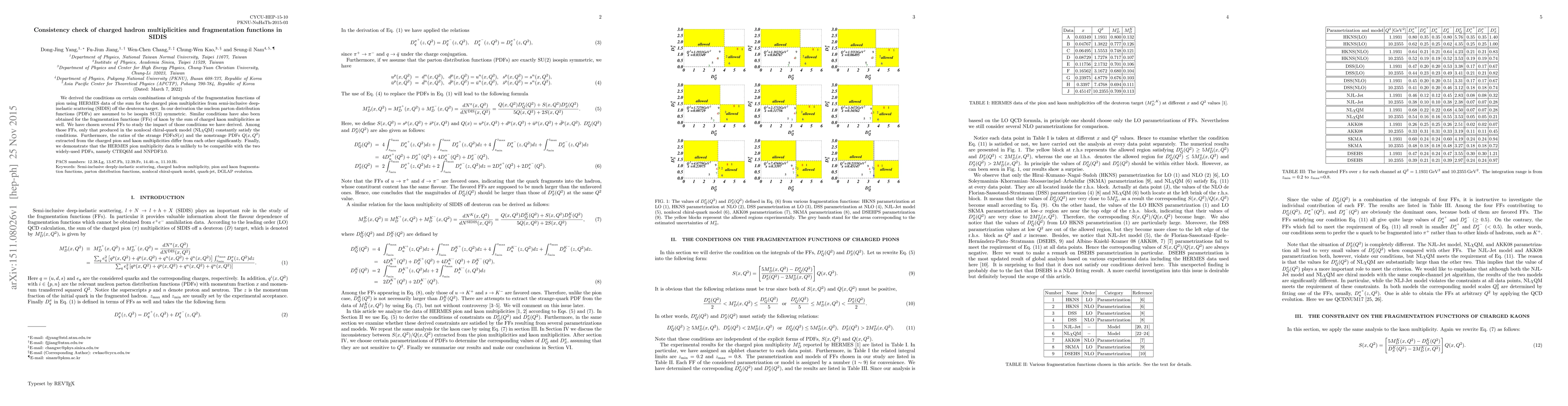 We derived the conditions on certain combinations of integrals of the fragmentation functions of pion using HERMES data of the sum for the charged pion multiplicities from semi-inclusive deep-inelastic scattering (SIDIS) off the deuteron target. In our derivation the nucleon parton distribution functions (PDFs) are assumed to be isospin SU(2) symmetric. Similar conditions have also been obtained for the fragmentation functions (FFs) of kaon by the sum of charged kaon multiplicities as well. We have chosen several FFs to study the impact of those conditions we have derived. Among those FFs, only that produced in the nonlocal chiral-quark model (NL$\chi$QM) constantly satisfy the conditions. Furthermore, the ratios of the strange PDFs $S(x)$ and the nonstrange PDFs $Q(x,Q^2)$ extracted from the charged pion and kaon multiplicities differ from each other significantly. Finally, we demonstrate that the HERMES pion multiplicity data is unlikely to be compatible with the two widely-used PDFs, namely CTEQ6M and NNPDF3.0.