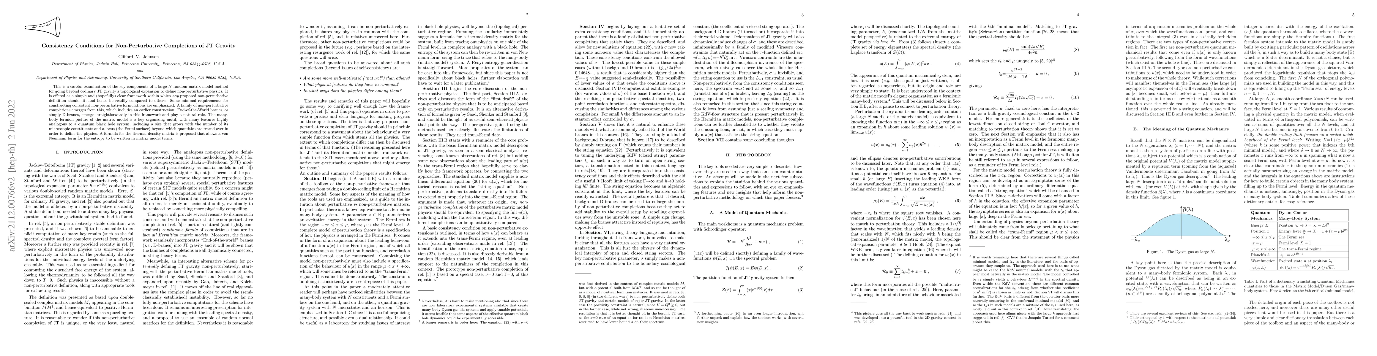 This is a careful examination of the key components of a large $N$ random matrix model method for going beyond ordinary JT gravity's topological expansion to define non-perturbative physics. It is offered as a simple and (hopefully) clear framework within which any proposed non-perturbative definition should fit, and hence be readily compared to others. Some minimal requirements for constructing consistent non-perturbative formulations are emphasized. A family of non-perturbative completions emerges from this, which includes an earlier construction. End-of-the-World branes, or simply D-branes, emerge straightforwardly in this framework and play a natural role. The many-body fermion picture of the matrix model is a key organizing motif, with many features highly analogous to a quantum black hole system, including a size that grows with the number of its microscopic constituents and a locus (the Fermi surface) beyond which quantities are traced over in order to define the physics. A formula for the thermal density matrix is proposed that allows a von Neumann form for the entropy to be written in matrix model terms.