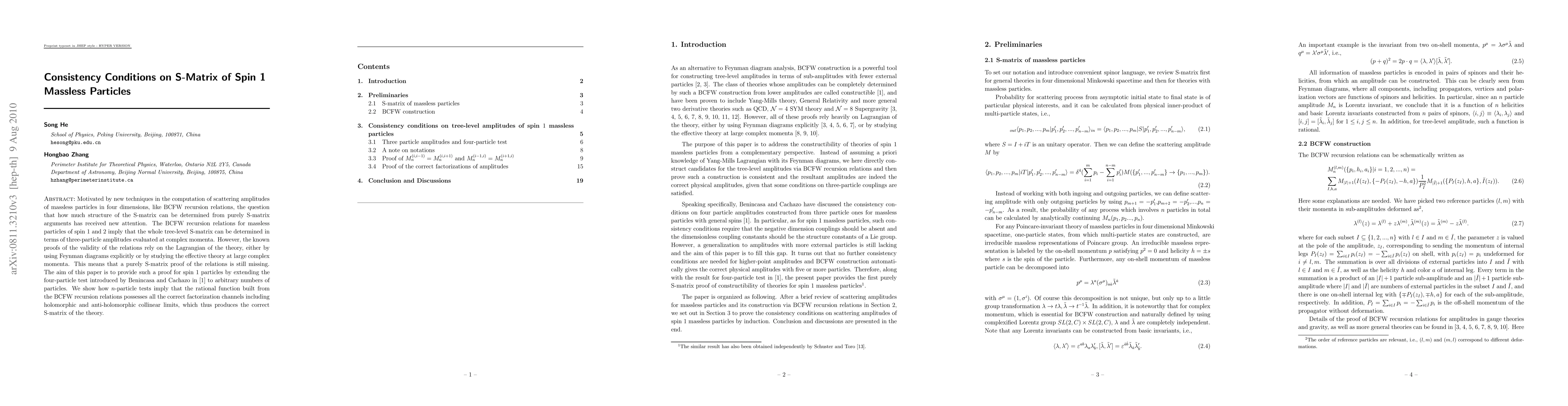 Motivated by new techniques in the computation of scattering amplitudes of massless particles in four dimensions, like BCFW recursion relations, the question of how much structure of the S-matrix can be determined from purely S-matrix arguments has received new attention. The BCFW recursion relations for massless particles of spin 1 and 2 imply that the whole tree-level S-matrix can be determined in terms of three-particle amplitudes (evaluated at complex momenta). However, the known proofs of the validity of the relations rely on the Lagrangian of the theory, either by using Feynman diagrams explicitly or by studying the effective theory at large complex momenta. This means that a purely S-matrix theoretic proof of the relations is still missing. The aim of this paper is to provide such a proof for spin 1 particles by extending the four-particle test introduced by P. Benincasa and F. Cachazo in arXiv:0705.4305[hep-th] to all particles. We show how n-particle tests imply that the rational function built from the BCFW recursion relations possesses all the correct factorization channels including holomorphic and anti-holomorphic collinear limits. This in turn implies that they give the correct S-matrix of the theory.