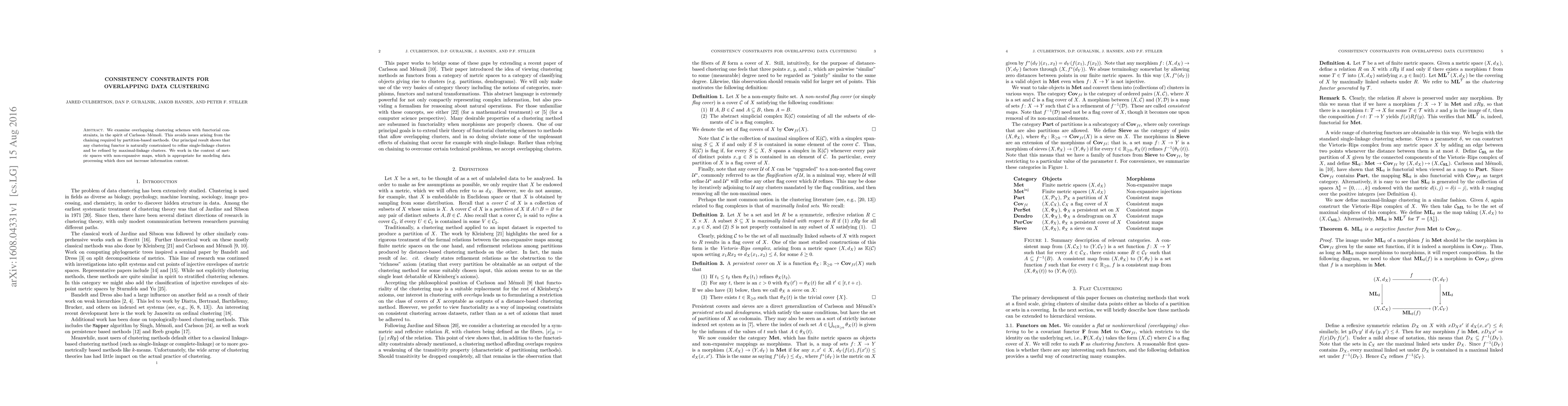 This paper explores overlapping clustering methods with functorial constraints, demonstrating that any clustering functor is naturally constrained to refine single-linkage clusters and be refined by maximal-linkage clusters. The study is conducted within metric spaces with non-expansive maps, suitable for data processing that preserves information content.