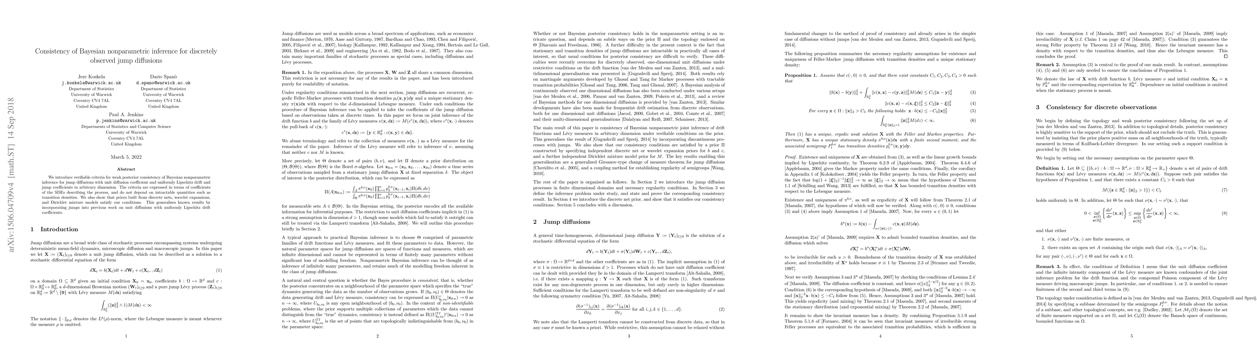This paper establishes verifiable criteria for weak posterior consistency in Bayesian nonparametric inference for jump diffusions, focusing on processes with unit diffusion and Lipschitz drift and jump coefficients. The criteria are based on SDE coefficients and do not rely on intractable transition densities, generalizing previous results to include jumps.