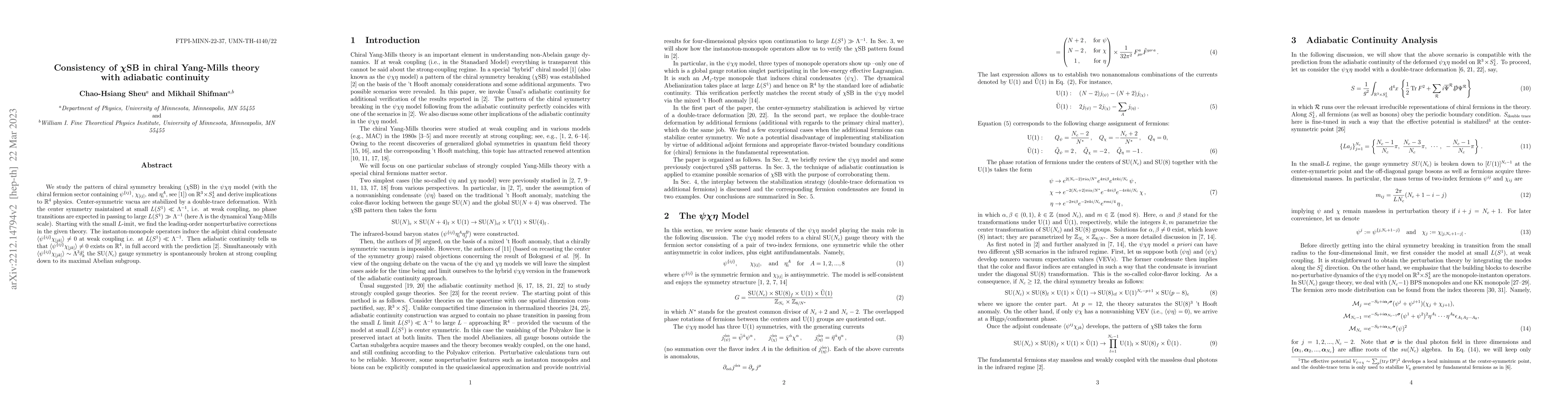 This paper investigates the consistency of chiral symmetry breaking ($\chi$SB) in the $\psi\chi\eta$ model on $\mathbb{R}^3 \times S^{1}_{L}$ and its implications for $\mathbb{R}^4$ physics. The study finds that the instanton-monopole operators induce an adjoint chiral condensate at weak coupling, maintaining $\chi$SB through adiabatic continuity.