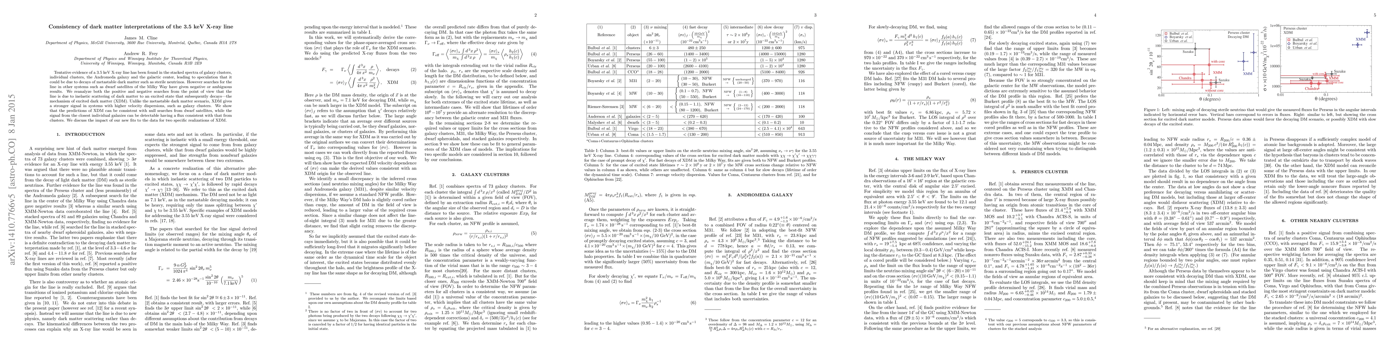 Tentative evidence of a 3.5 keV X-ray line has been found in the stacked spectra of galaxy clusters, individual clusters, the Andromeda galaxy and the galactic center, leading to speculation that it could be due to decays of metastable dark matter such as sterile neutrinos. However searches for the line in other systems such as dwarf satellites of the Milky Way have given negative or ambiguous results. We reanalyze both the positive and negative searches from the point of view that the line is due to inelastic scattering of dark matter to an excited state that subsequently decays---the mechanism of excited dark matter (XDM). Unlike the metastable dark matter scenario, XDM gives a stronger signal in systems with higher velocity dispersions, such as galaxy clusters. We show that the predictions of XDM can be consistent with null searches from dwarf satellites, while the signal from the closest individual galaxies can be detectable having a flux consistent with that from clusters. We discuss the impact of our new fits to the data for two specific realizations of XDM.