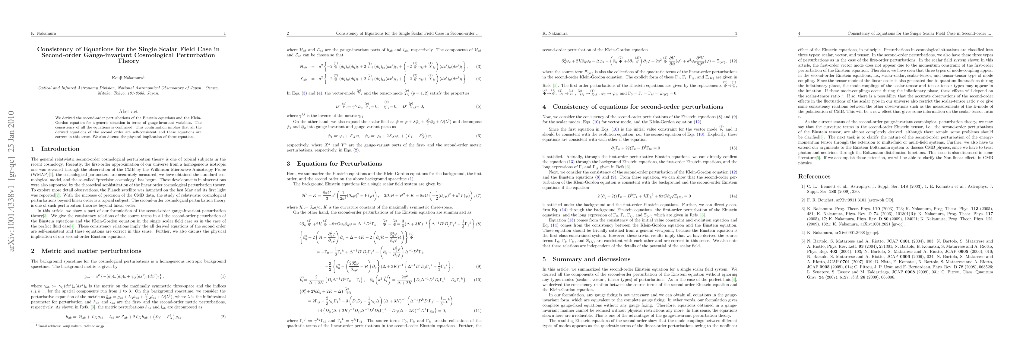 We derived the second-order perturbations of the Einstein equations and the Klein-Gordon equation for a generic situation in terms of gauge-invariant variables. The consistency of all the equations is confirmed. This confirmation implies that all the derived equations of the second order are self-consistent and these equations are correct in this sense. We also discuss the physical implication of these equations.