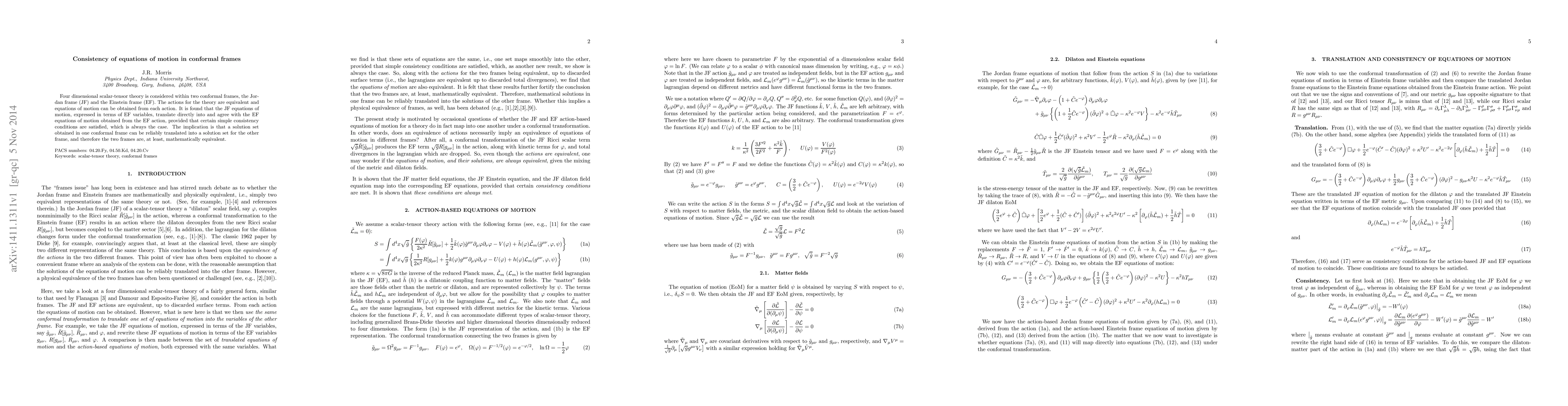 This paper investigates the equivalence of scalar-tensor theories in Jordan and Einstein conformal frames, demonstrating that the equations of motion in one frame can be translated into the other, provided specific consistency conditions are met. This implies that solutions in one frame can be reliably converted to the other, confirming mathematical equivalence between the two.