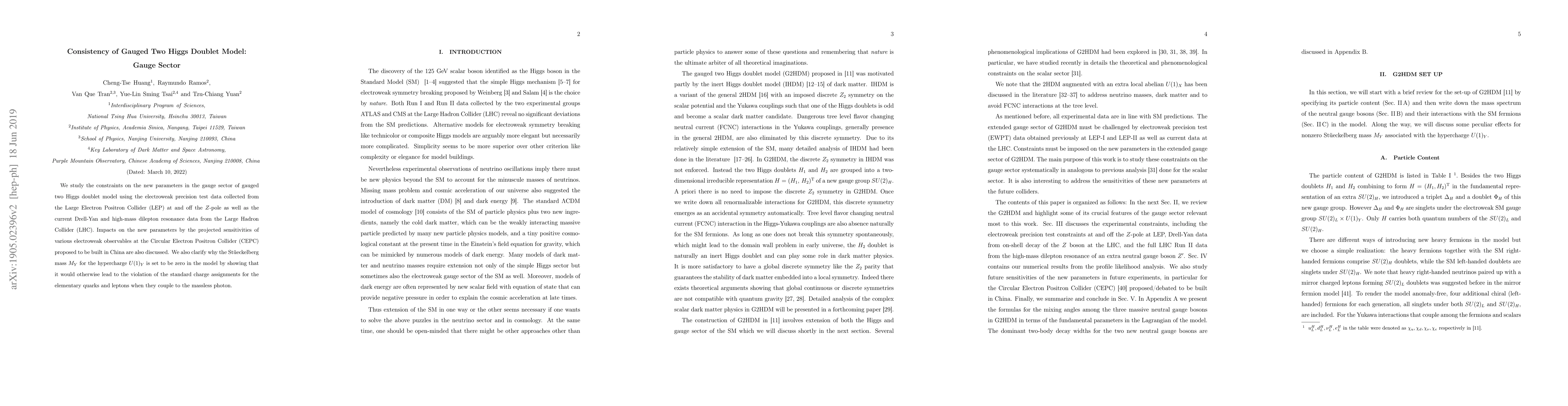 Researchers studied constraints on new parameters in a gauge sector model using LEP and LHC data to improve the two Higgs doublet model's consistency with electroweak precision tests. The study also examined the implications of future experiments like the CEPC.