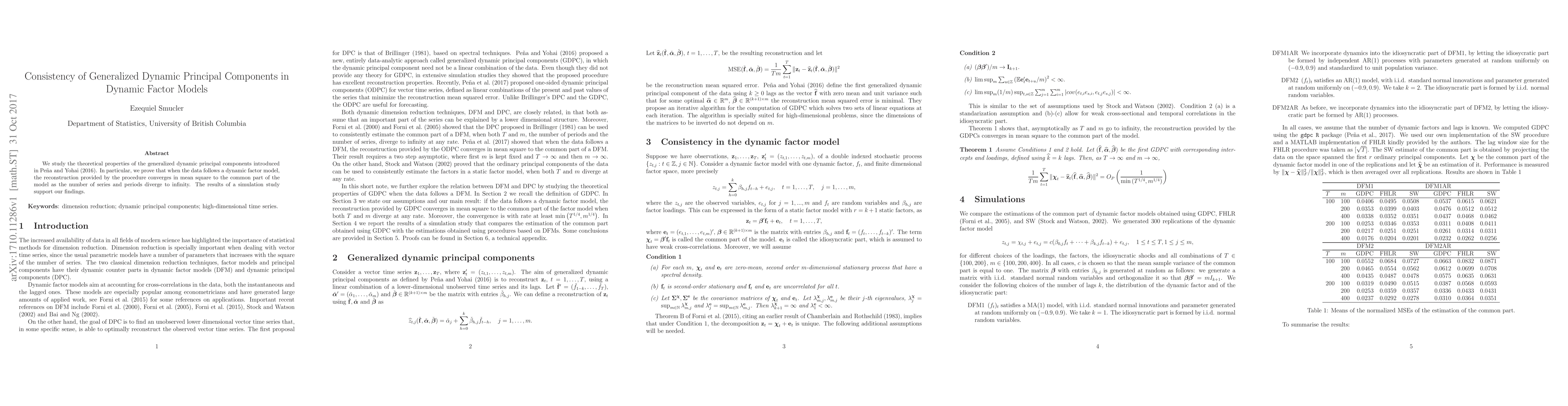 A study proves that a statistical method for dynamic factor models converges to the common part of the model as data series and periods increase, supporting its accuracy in reconstructing underlying patterns.