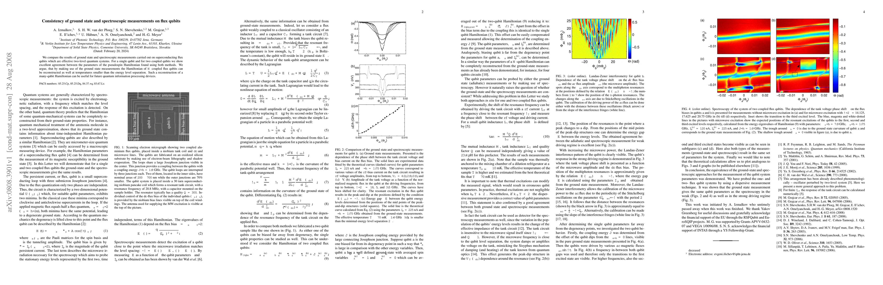 We compare the results of ground state and spectroscopic measurements carried out on superconducting flux qubits which are effective two-level quantum systems. For a single qubit and for two coupled qubits we show excellent agreement between the parameters of the pseudospin Hamiltonian found using both methods. We argue, that by making use of the ground state measurements the Hamiltonian of N coupled flux qubits can be reconstructed as well at temperatures smaller than the energy level separation. Such a reconstruction of a many-qubit Hamiltonian can be useful for future quantum information processing devices.