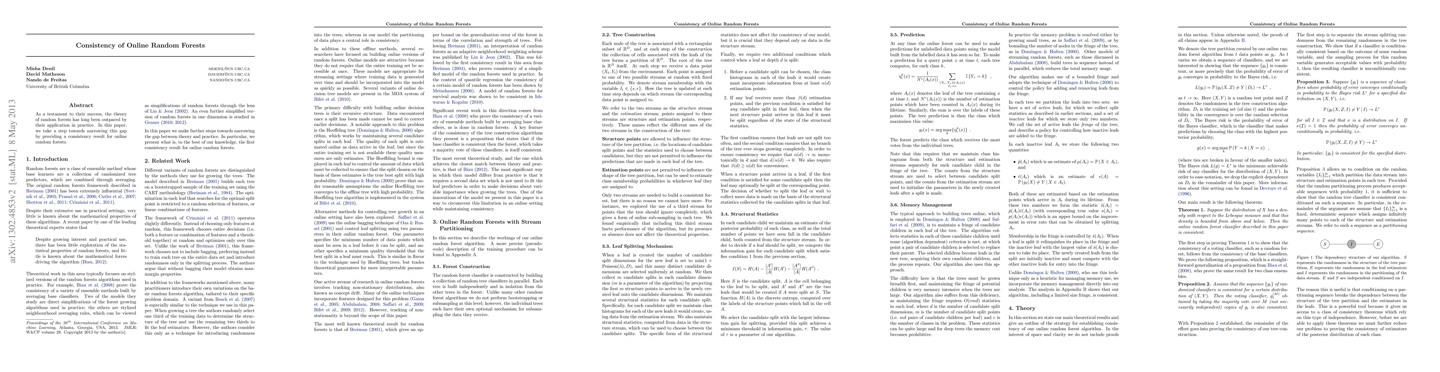 Summary: This paper presents a consistency result for online random forests, aiming to bridge the gap between theoretical understanding and practical applications of random forests. The findings contribute to the theoretical foundation of these widely used machine learning algorithms.