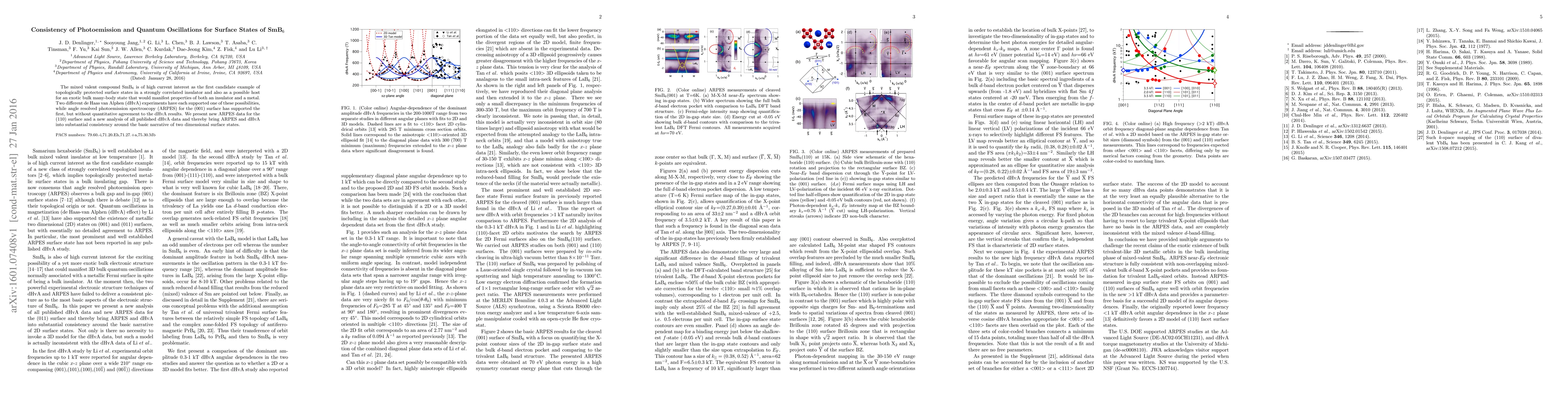 This study presents new ARPES data for the (110) surface of SmB6 and a revised dHvA analysis, bringing these two methods into substantial consistency. The findings support the existence of two-dimensional surface states in SmB6, reinforcing its role as a candidate for topologically protected surface states in a strongly correlated insulator.