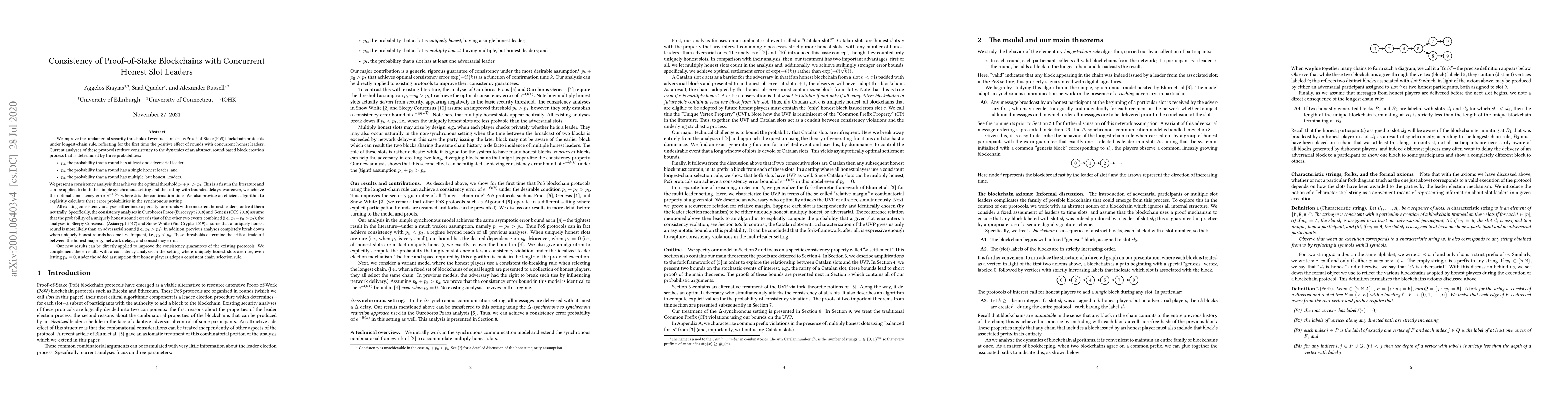 We improve the fundamental security threshold of eventual consensus Proof-of-Stake (PoS) blockchain protocols under the longest-chain rule by showing, for the first time, the positive effect of rounds with concurrent honest leaders. Current security analyses reduce consistency to the dynamics of an abstract, round-based block creation process that is determined by three events associated with a round: (i) event $A$: at least one adversarial leader, (ii) event $S$: a single honest leader, and (iii) event $M$: multiple, but honest, leaders. We present an asymptotically optimal consistency analysis assuming that an honest round is more likely than an adversarial round (i.e., $\Pr[S] + \Pr[M] > \Pr[A]$); this threshold is optimal. This is a first in the literature and can be applied to both the simple synchronous communication as well as communication with bounded delays. In all existing consistency analyses, event $M$ is either penalized or treated neutrally. Specifically, the consistency analyses in Ouroboros Praos (Eurocrypt 2018) and Genesis (CCS 2018) assume that $\Pr[S] - \Pr[M] > \Pr[A]$; the analyses in Sleepy Consensus (Asiacrypt 2017) and Snow White (Fin. Crypto 2019) assume that $\Pr[S] > \Pr[A]$. Moreover, all existing analyses completely break down when $\Pr[S] < \Pr[A]$. These thresholds determine the critical trade-off between the honest majority, network delays, and consistency error. Our new results can be directly applied to improve the security guarantees of the existing protocols. We also provide an efficient algorithm to explicitly calculate these error probabilities in the synchronous setting. Furthermore, we complement these results by analyzing the setting where $S$ is rare, even allowing $\Pr[S] = 0$, under the added assumption that honest players adopt a consistent chain selection rule.