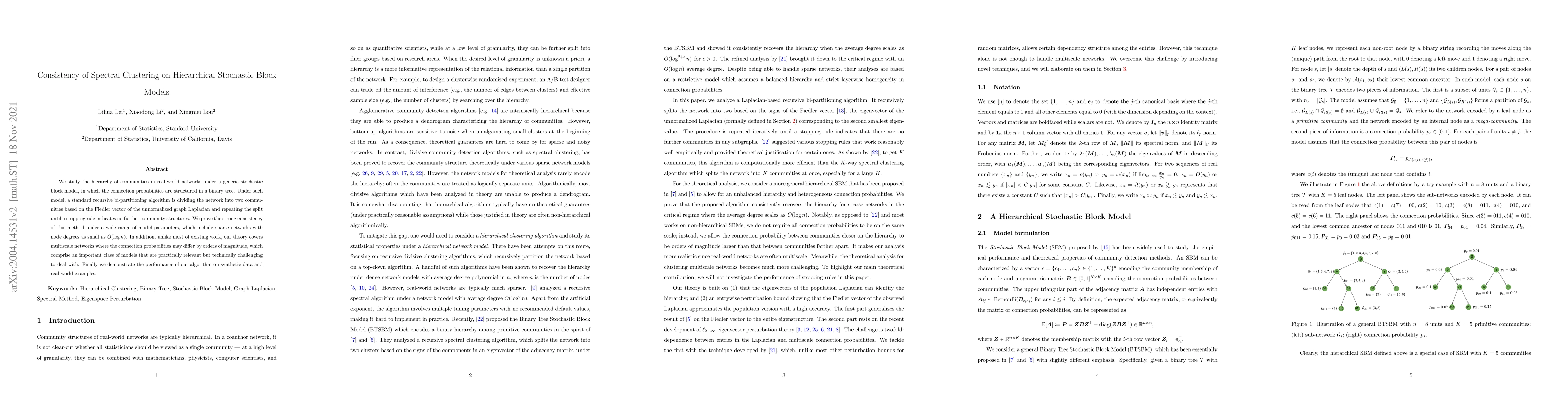 We study the hierarchy of communities in real-world networks under a generic stochastic block model, in which the connection probabilities are structured in a binary tree. Under such model, a standard recursive bi-partitioning algorithm is dividing the network into two communities based on the Fiedler vector of the unnormalized graph Laplacian and repeating the split until a stopping rule indicates no further community structures. We prove the strong consistency of this method under a wide range of model parameters, which include sparse networks with node degrees as small as $O(\log n)$. In addition, unlike most of existing work, our theory covers multiscale networks where the connection probabilities may differ by orders of magnitude, which comprise an important class of models that are practically relevant but technically challenging to deal with. Finally we demonstrate the performance of our algorithm on synthetic data and real-world examples.