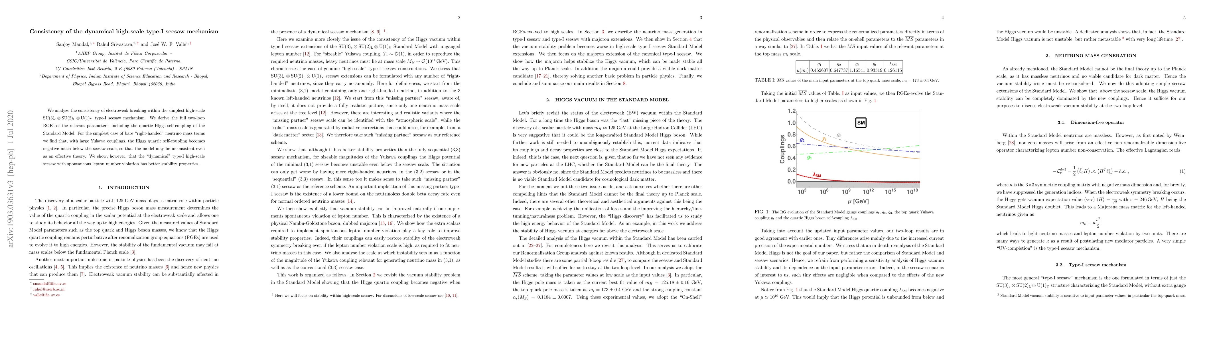 We analyze the consistency of electroweak breaking within the simplest high-scale Standard Model type-I seesaw mechanism. We derive the full two-loop RGEs of the relevant parameters, including the quartic Higgs self-coupling of the Standard Model. For the simplest case of bare "right-handed" neutrino mass terms we find that, with large Yukawa couplings, the Higgs quartic self-coupling becomes negative much below the seesaw scale, so that the model may be inconsistent even as an effective theory. We show, however, that the "dynamical" type-I high-scale seesaw with spontaneous lepton number violation has better stability properties.