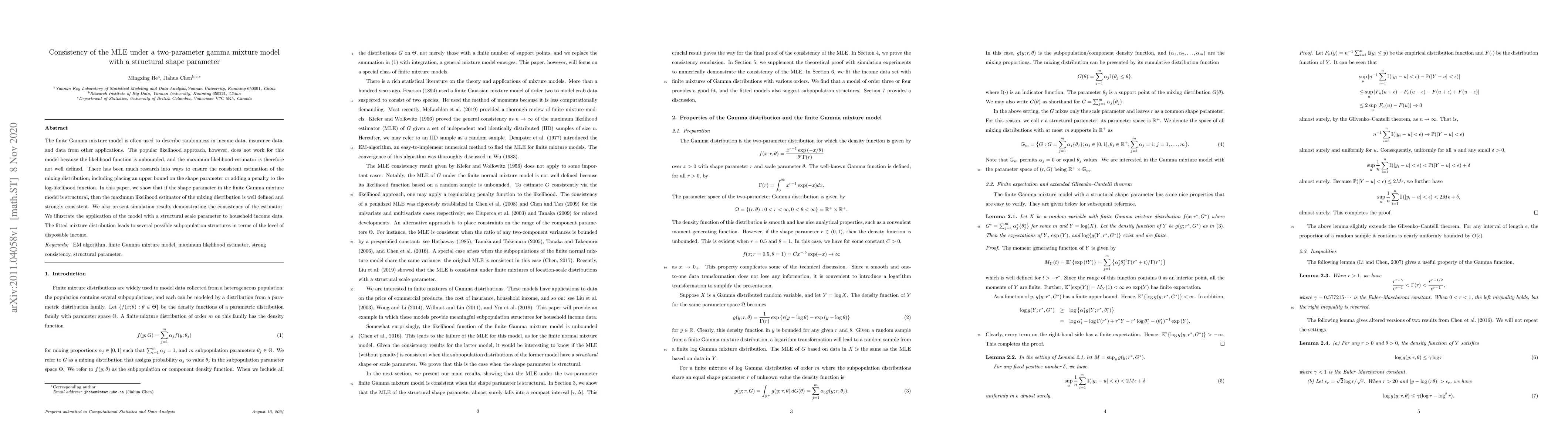 This paper demonstrates that when the shape parameter in a two-parameter gamma mixture model is structural, the maximum likelihood estimator (MLE) is well-defined and strongly consistent. Simulation results and an application to household income data illustrate the model's effectiveness in identifying subpopulation structures based on disposable income levels.