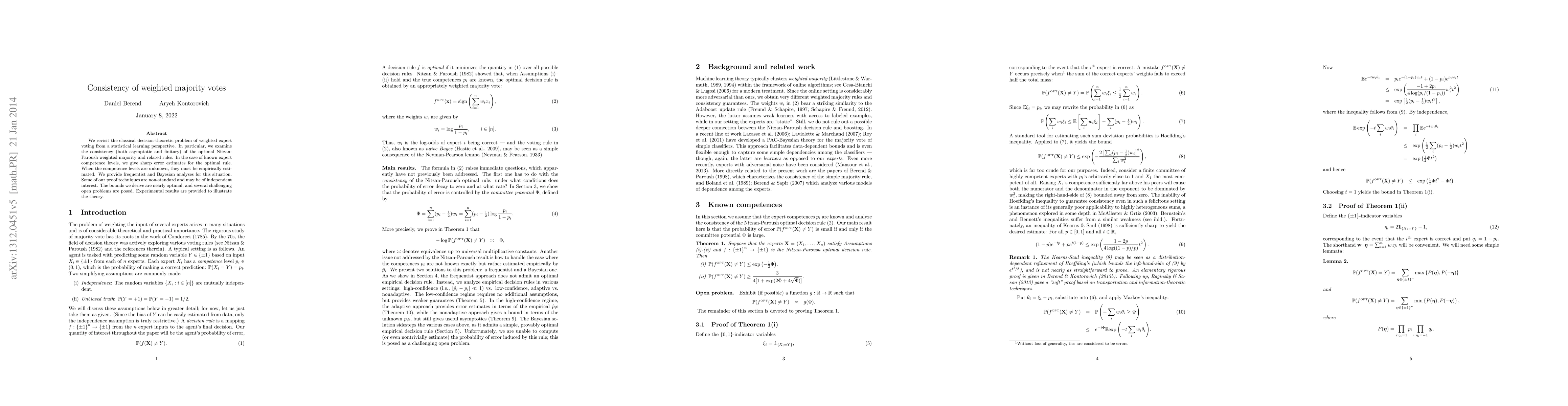 This paper investigates the consistency of weighted majority votes from a statistical learning perspective, providing sharp error estimates for optimal rules in known and unknown expert competence levels.
