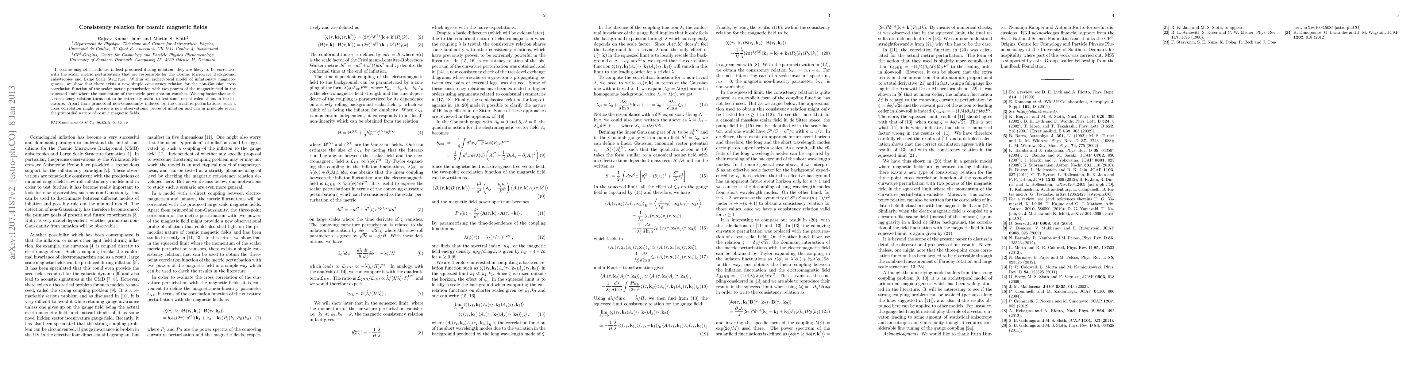 This paper introduces a new consistency relation for the correlation between cosmic magnetic fields and scalar metric perturbations, which could help test inflation models and observe primordial non-Gaussianity.