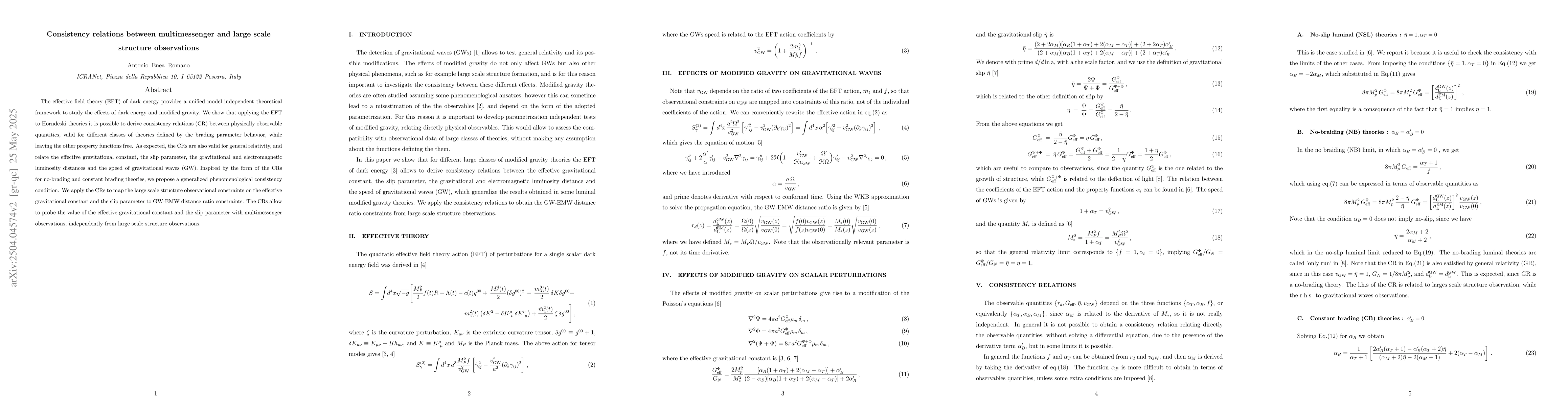 The main technical contribution is the derivation of a theory-independent consistency relation linking various cosmological observables in the context of modified gravity and dark energy.