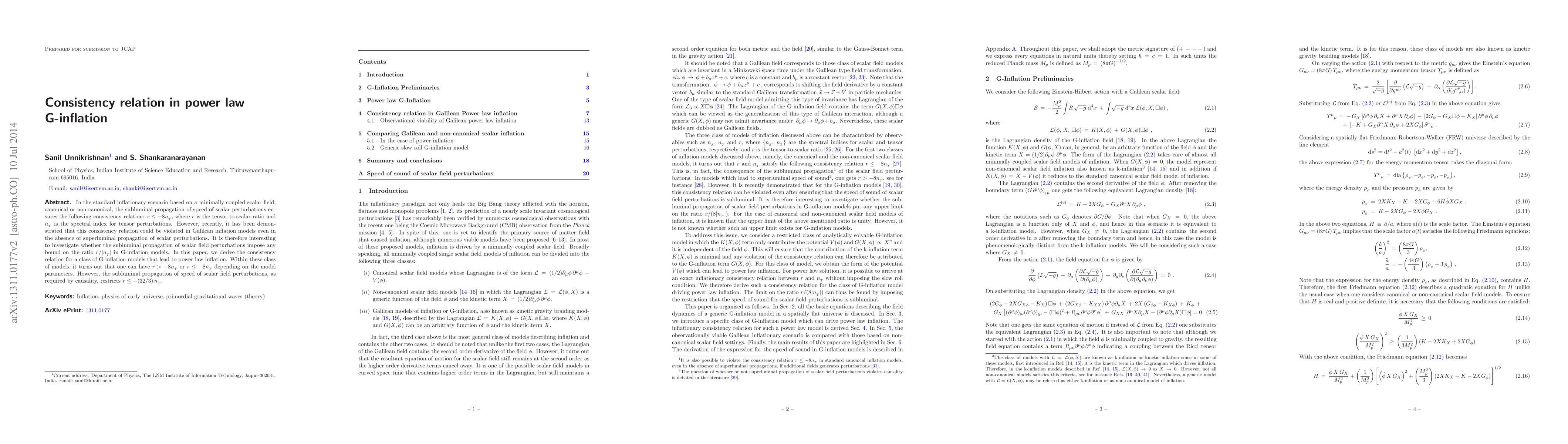This paper investigates the consistency relation in power law G-inflation models, finding that the subluminal propagation of scalar field perturbations restricts the tensor-to-scalar ratio $r$ to satisfy $r \leq -(32/3)\,n_{_T}$, even when the standard bound $r \leq -8n_{_T}$ may be violated.