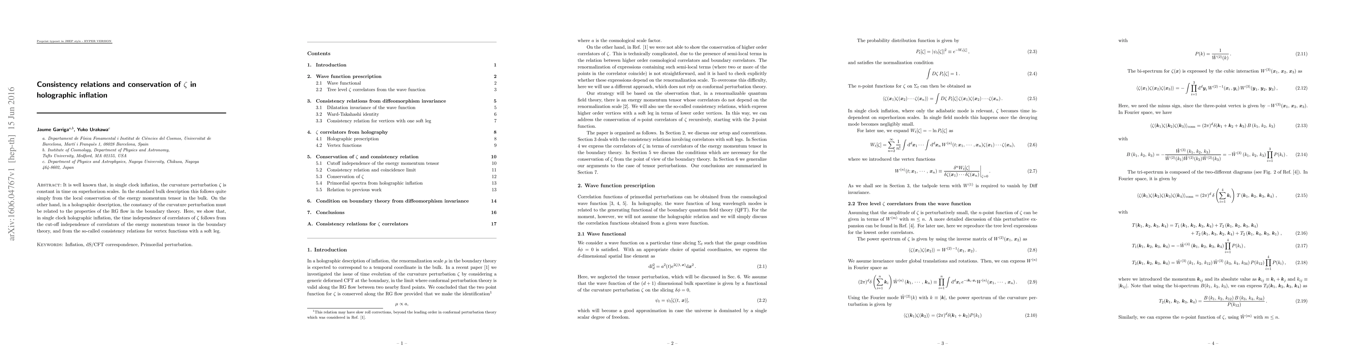 This paper explores the constancy of the curvature perturbation $\zeta$ in holographic inflation, demonstrating that its time independence in single clock inflation arises from the cut-off independence of correlators of the energy momentum tensor in the boundary theory and the consistency relations for vertex functions with a soft leg.