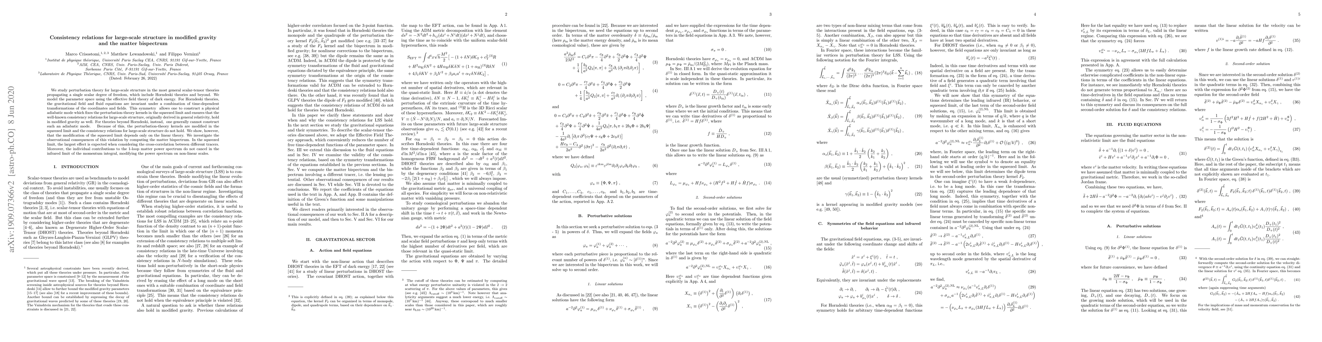This paper explores consistency relations for large-scale structure in scalar-tensor theories of gravity, showing that while Horndeski theories maintain these relations, theories beyond Horndeski do not. It computes the matter bispectrum to investigate observational consequences, finding that the largest effects occur in cross-correlations between different tracers and that the 1-loop matter power spectrum is modified on non-linear scales.