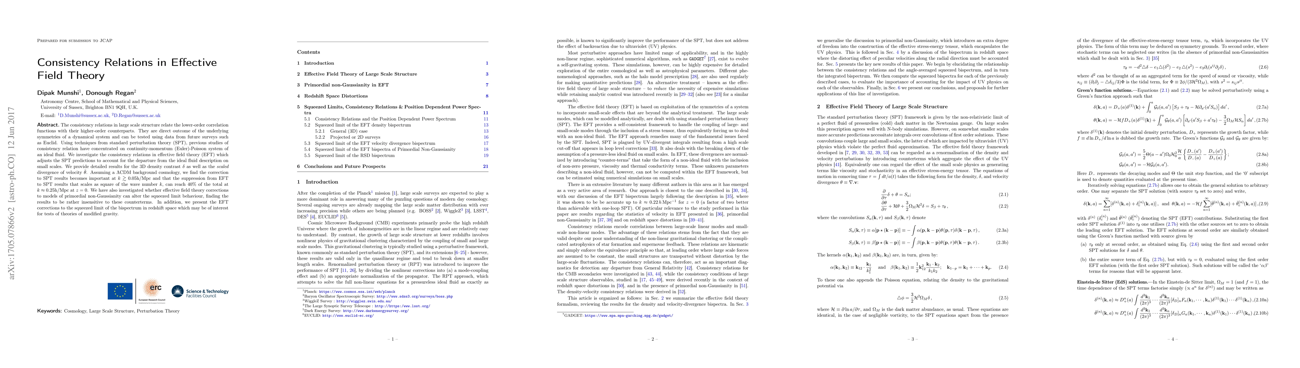 Researchers investigate consistency relations in effective field theory, finding that corrections to standard perturbation theory become important at small scales (k > 0.05 h/Mpc) and can suppress SPT results by up to 40%.