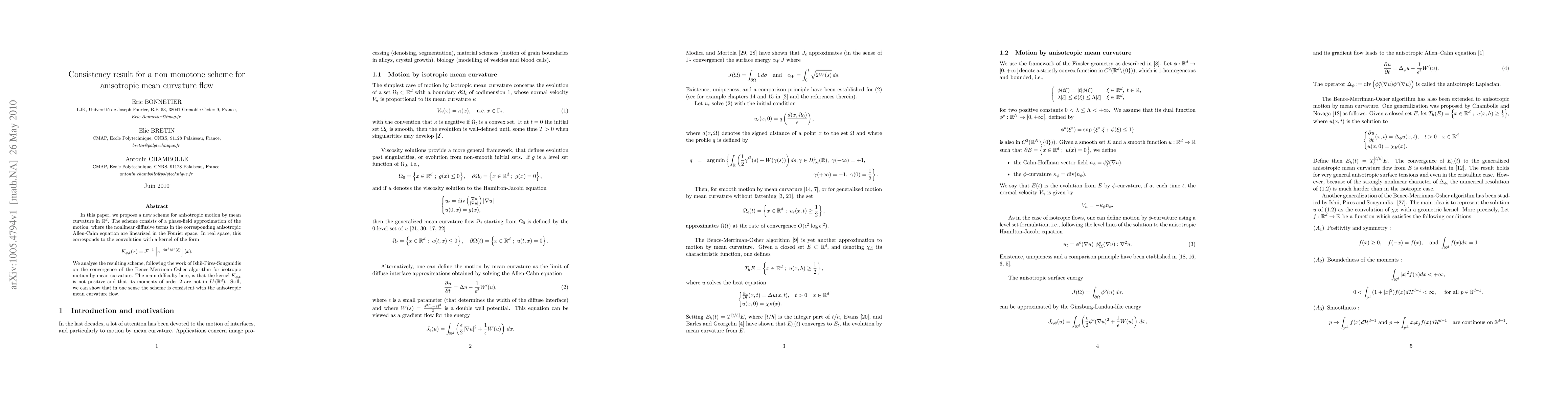 This paper introduces a novel non-monotonic scheme for anisotropic motion by mean curvature in $R^d$. Despite challenges posed by a non-positive kernel and non-$L^1$ moments of order 2, the authors demonstrate the scheme's consistency with anisotropic mean curvature flow.