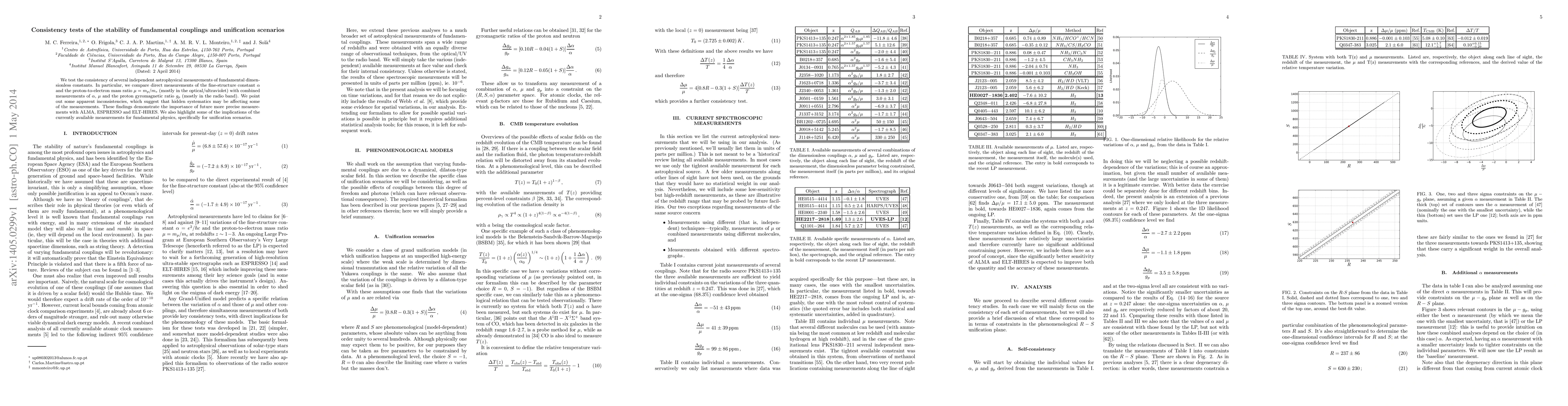 This paper tests the consistency of astrophysical measurements of fundamental constants, finding apparent inconsistencies that suggest hidden systematics. It emphasizes the need for more precise measurements to resolve these issues and discusses implications for unification scenarios in fundamental physics.