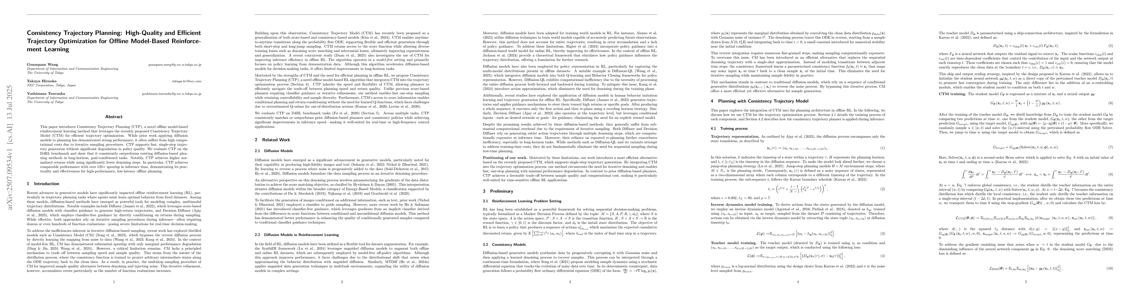 The paper introduces Consistency Trajectory Planning (CTP), a novel offline model-based reinforcement learning method that optimizes trajectories using the Consistency Trajectory Model (CTM). CTP supports single-step trajectory generation, improving upon iterative sampling procedures of prior diffusion-based methods.