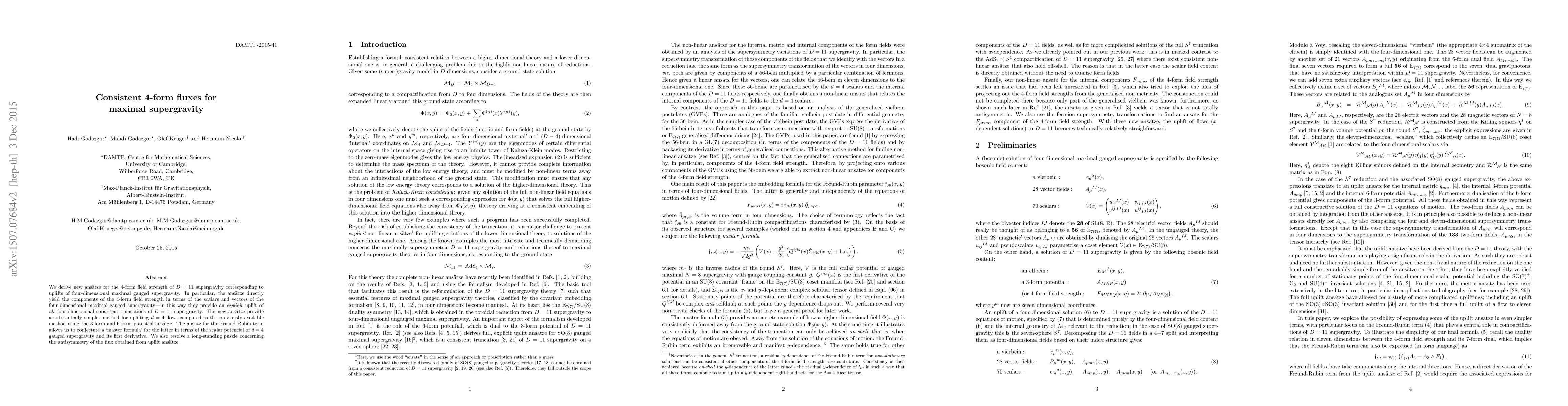 This paper presents new ansätze for the 4-form field strength in D=11 supergravity that uplift four-dimensional maximal gauged supergravity, providing a simpler method for such uplifts compared to previous techniques. It also resolves a longstanding issue regarding the antisymmetry of the resulting flux.