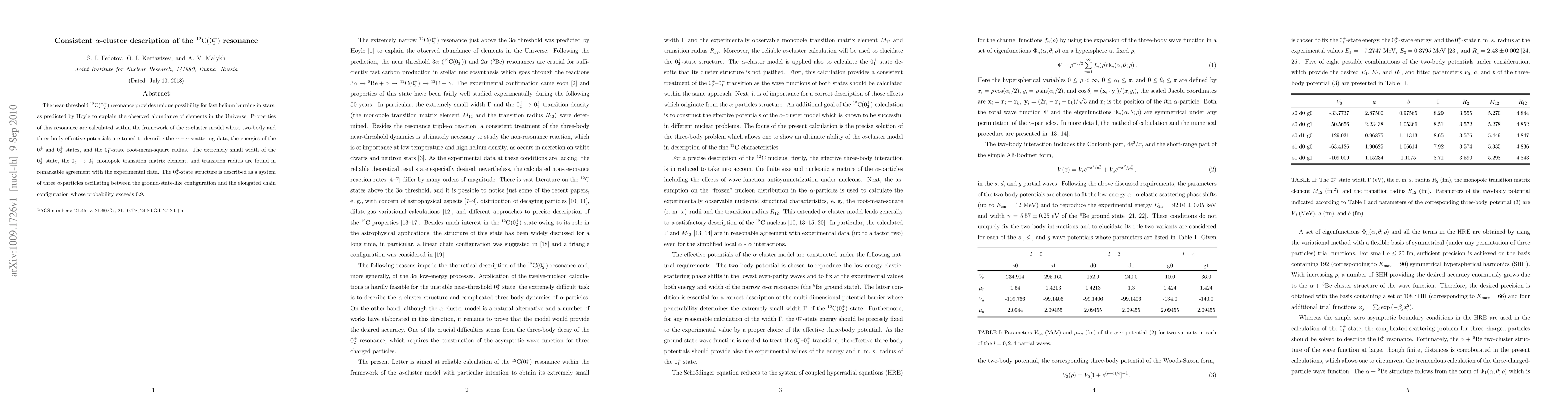 The near-threshold 12C (0^+_2) resonance provides unique possibility for fast helium burning in stars, as predicted by Hoyle to explain the observed abundance of elements in the Universe. Properties of this resonance are calculated within the framework of the alpha-cluster model whose two-body and three-body effective potentials are tuned to describe the alpha - alpha scattering data, the energies of the 0^+_1 and 0^+_2 states, and the 0^+_1-state root-mean-square radius. The extremely small width of the 0^+_2 state, the 0_2^+ to 0_1^+ monopole transition matrix element, and transition radius are found in remarkable agreement with the experimental data. The 0^+_2-state structure is described as a system of three alpha-particles oscillating between the ground-state-like configuration and the elongated chain configuration whose probability exceeds 0.9.