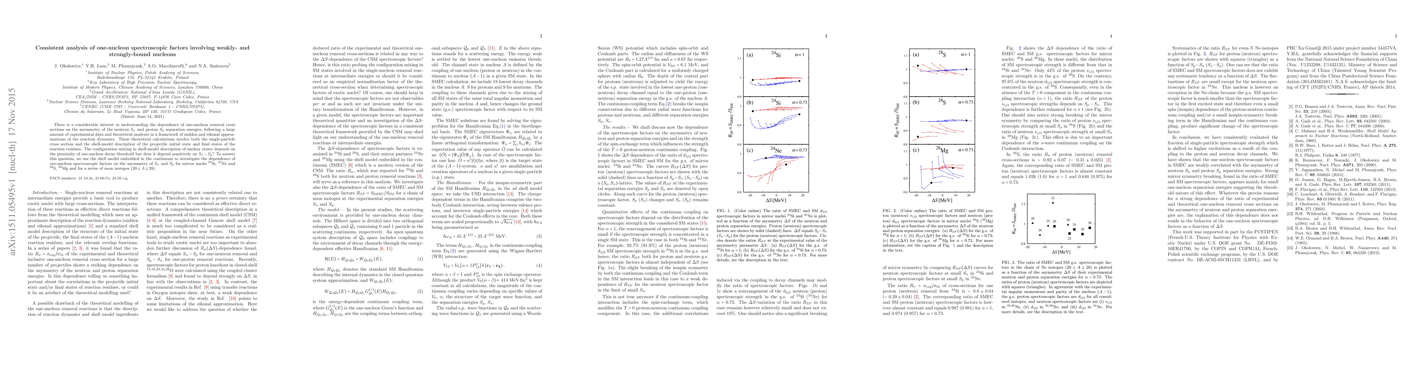 There is a considerable interest in understanding the dependence of one-nucleon removal cross sections on the asymmetry of the neutron $S_n$ and proton $S_p$ separation energies, following a large amount of experimental data and theoretical analyses in a framework of sudden and eikonal approximations of the reaction dynamics. These theoretical calculations involve both the single-particle cross section and the shell-model description of the projectile initial state and final states of the reaction residues. The configuration mixing in shell-model description of nuclear states depends on the proximity of one-nucleon decay threshold but does it depend sensitively on $S_n - S_p$? To answer this question, we use the shell model embedded in the continuum to investigate the dependence of one-nucleon spectroscopic factors on the asymmetry of $S_n$ and $S_p$ for mirror nuclei $^{24}$Si, $^{24}$Ne and $^{28}$S, $^{28}$Mg and for a series of neon isotopes ($20 \leq A \leq 28$).