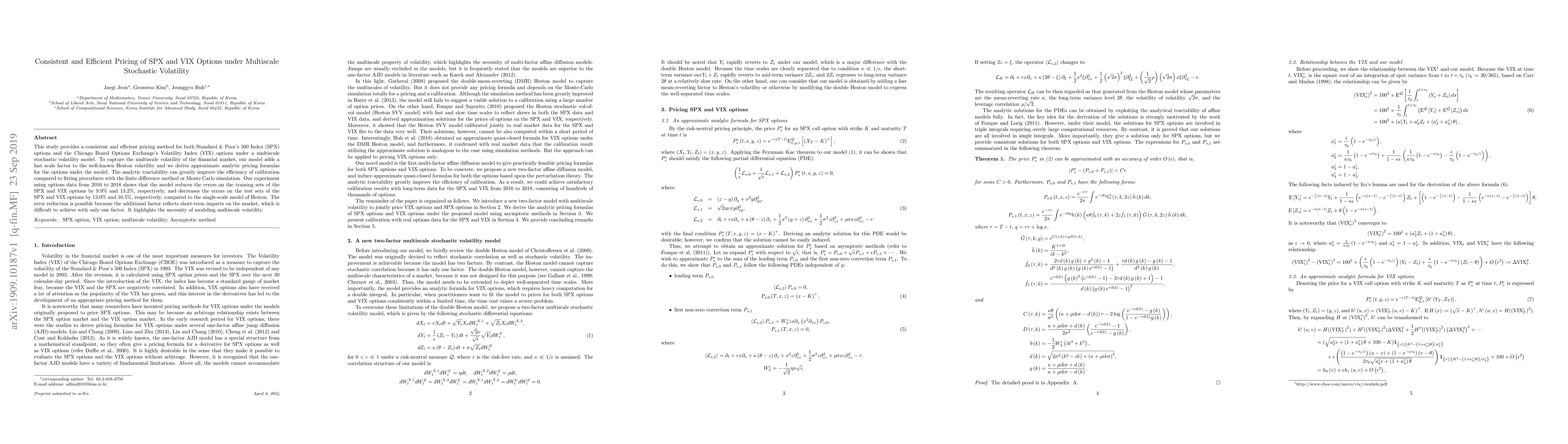 This study provides a consistent and efficient pricing method for both Standard & Poor's 500 Index (SPX) options and the Chicago Board Options Exchange's Volatility Index (VIX) options under a multiscale stochastic volatility model. To capture the multiscale volatility of the financial market, our model adds a fast scale factor to the well-known Heston volatility and we derive approximate analytic pricing formulas for the options under the model. The analytic tractability can greatly improve the efficiency of calibration compared to fitting procedures with the finite difference method or Monte Carlo simulation. Our experiment using options data from 2016 to 2018 shows that the model reduces the errors on the training sets of the SPX and VIX options by 9.9% and 13.2%, respectively, and decreases the errors on the test sets of the SPX and VIX options by 13.0\% and 16.5\%, respectively, compared to the single-scale model of Heston. The error reduction is possible because the additional factor reflects short-term impacts on the market, which is difficult to achieve with only one factor. It highlights the necessity of modeling multiscale volatility.