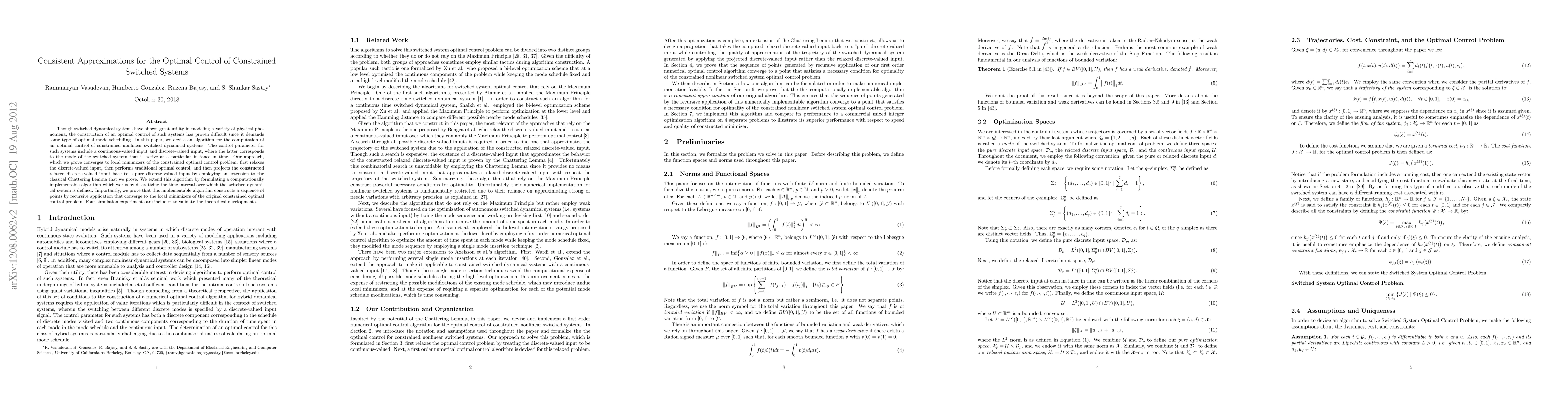 This paper presents an algorithm for computing optimal control of constrained nonlinear switched dynamical systems, addressing the difficulty of optimal mode scheduling. The algorithm converges to local minimizers by relaxing the discrete-valued input, performing traditional optimal control, and projecting back to a pure discrete-valued input using an extended Chattering Lemma. Simulation experiments validate the theoretical approach.