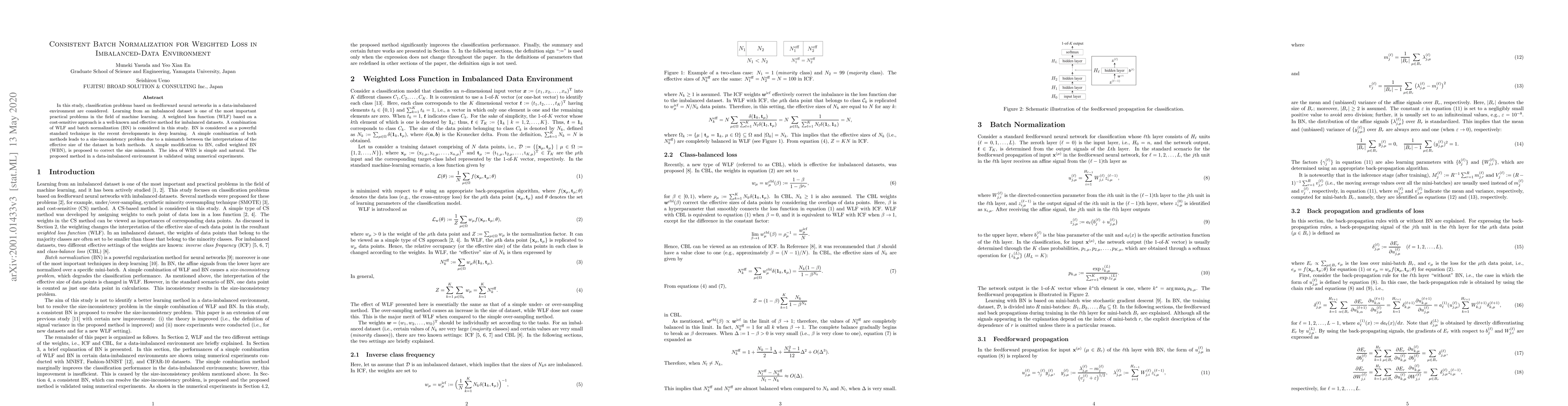 This study proposes a weighted batch normalization (WBN) method to address the size-inconsistency problem when combining batch normalization with a weighted loss function for imbalanced datasets. Numerical experiments validate the effectiveness of the proposed WBN in improving classification performance in such environments.