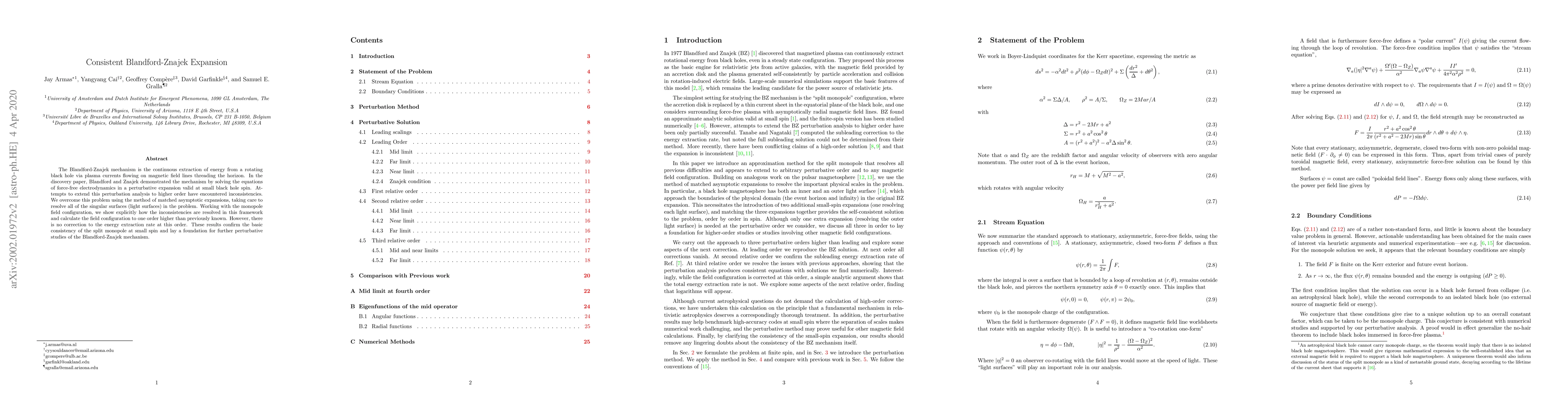 This paper resolves inconsistencies in higher-order perturbation analyses of the Blandford-Znajek mechanism, using matched asymptotic expansions to calculate the field configuration to a higher order. Despite this, the energy extraction rate remains unchanged, confirming the basic consistency of the mechanism at small black hole spin.