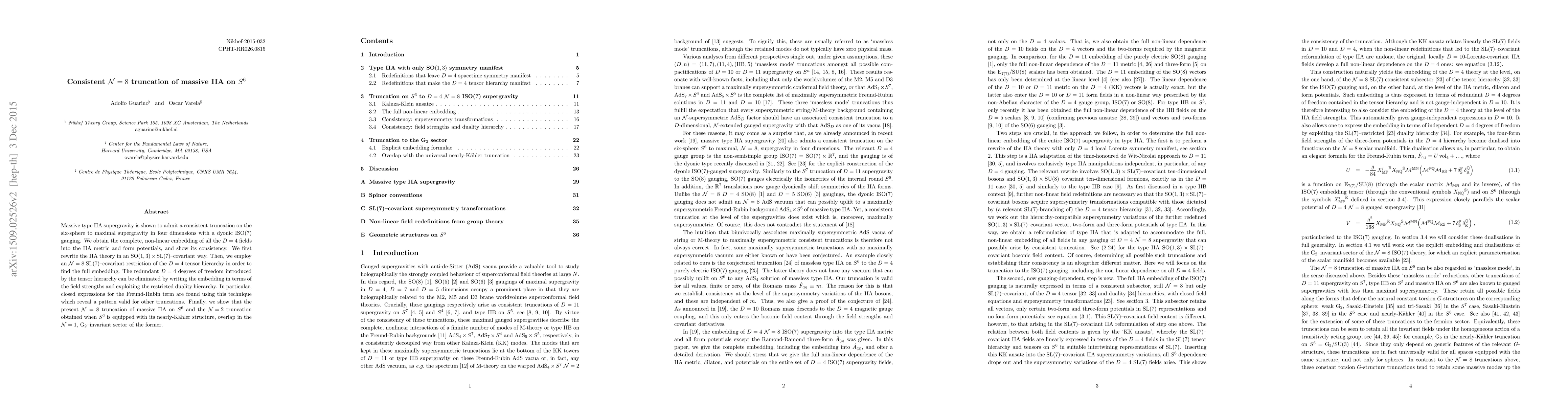 This paper demonstrates a consistent ${\cal N}=8$ truncation of massive type IIA supergravity on $S^6$, embedding all $D=4$ fields into the IIA metric and form potentials. The authors achieve this by using an $\textrm{SO}(1,3) \times \textrm{SL}(7)$-covariant formulation and an ${\cal N}=8$ SL(7)-covariant restriction of the $D=4$ tensor hierarchy, revealing a pattern applicable to other truncations.