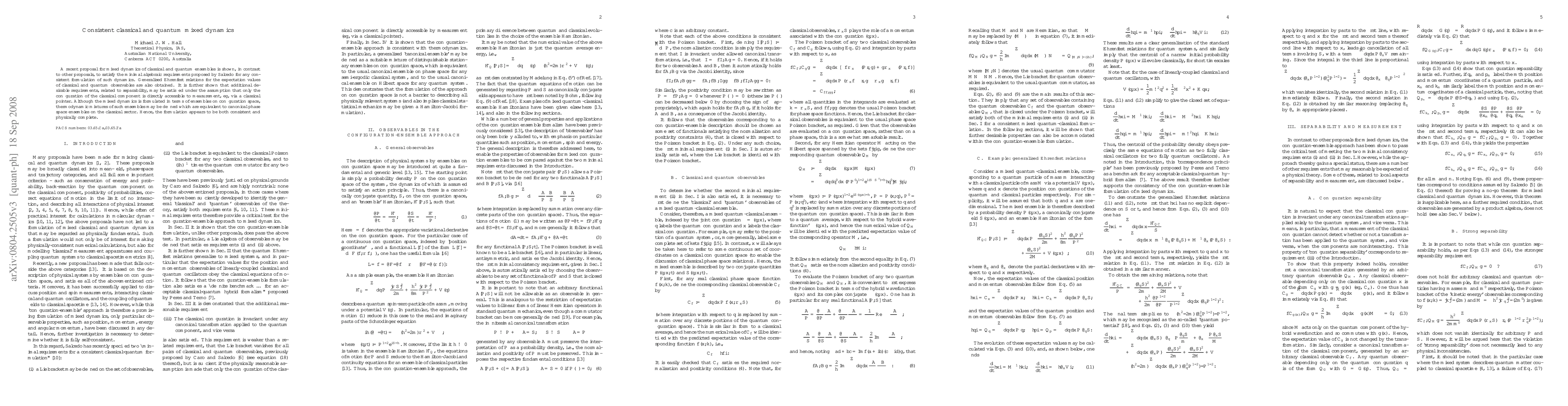 This paper proposes a consistent mixed dynamics for classical and quantum ensembles that satisfies Salcedo's algebraic requirements and generalized Ehrenfest relations. It also demonstrates that additional separability requirements can be met when only the classical component's configuration is measurable.