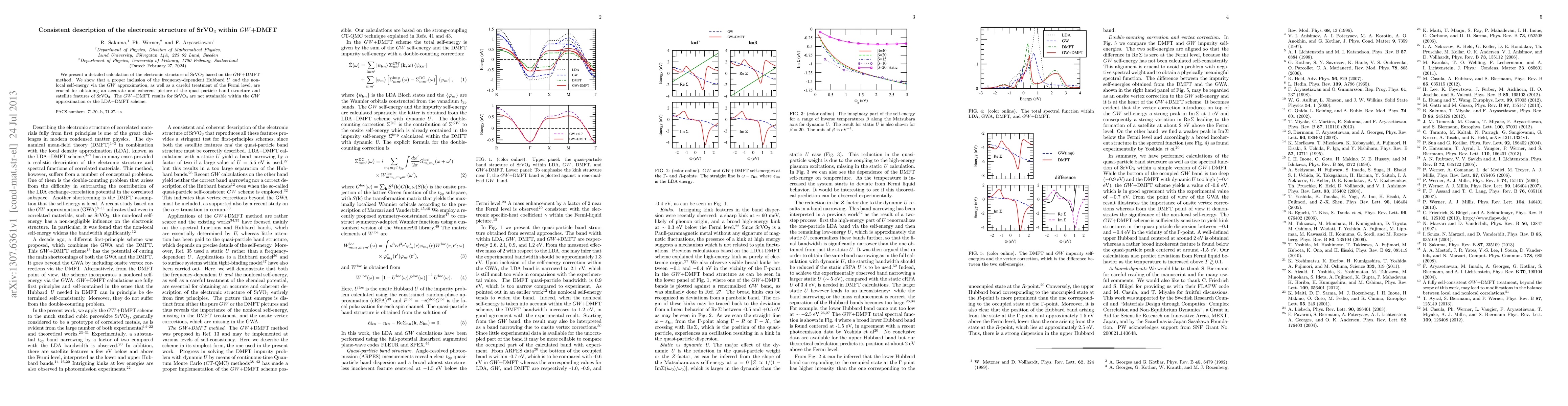 This paper uses the GW+DMFT method to accurately describe the electronic structure of SrVO$_{3}$, emphasizing the importance of frequency-dependent Hubbard U and nonlocal self-energy for precise quasi-particle band structure and satellite features. The results surpass those obtained from GW alone or LDA+DMFT.
