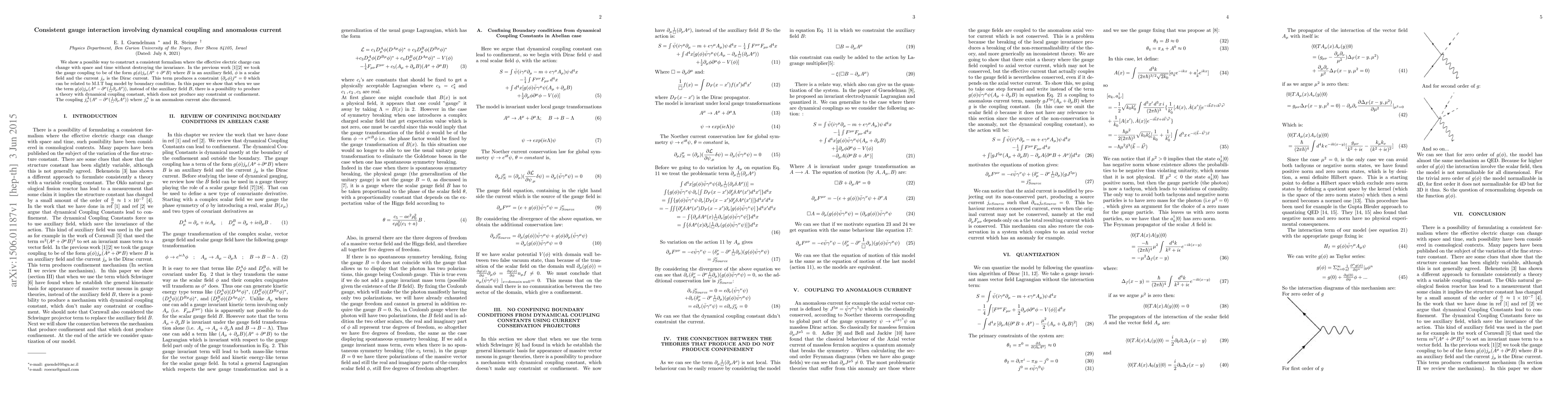 We show a possible way to construct a consistent formalism where the effective electric charge can change with space and time without destroying the invariance. In the previous work [1][2] we took the gauge coupling to be of the form $g(\phi)j_\mu (A^{\mu} +\partial^{\mu}B)$ where $B$ is an auxiliary field, $ \phi $ is a scalar field and the current $j_\mu$ is the Dirac current. This term produces a constraint $ (\partial_{\mu}\phi) j^{\mu}=0 $ which can be related to M.I.T bag model by boundary condition. In this paper we show that when we use the term $ g(\phi)j_{\mu}(A^{\mu} - \partial^{\mu}(\frac{1}{\square}\partial_{\rho}A^{\rho})) $, instead of the auxiliary field $ B $, there is a possibility to produce a theory with dynamical coupling constant, which does not produce any constraint or confinement. The coupling $ j_{\mu}^{A}(A^{\mu} - \partial^{\mu}(\frac{1}{\square}\partial_{\rho}A^{\rho})) $ where $ j_{\mu}^{A} $ is an anomalous current also discussed.