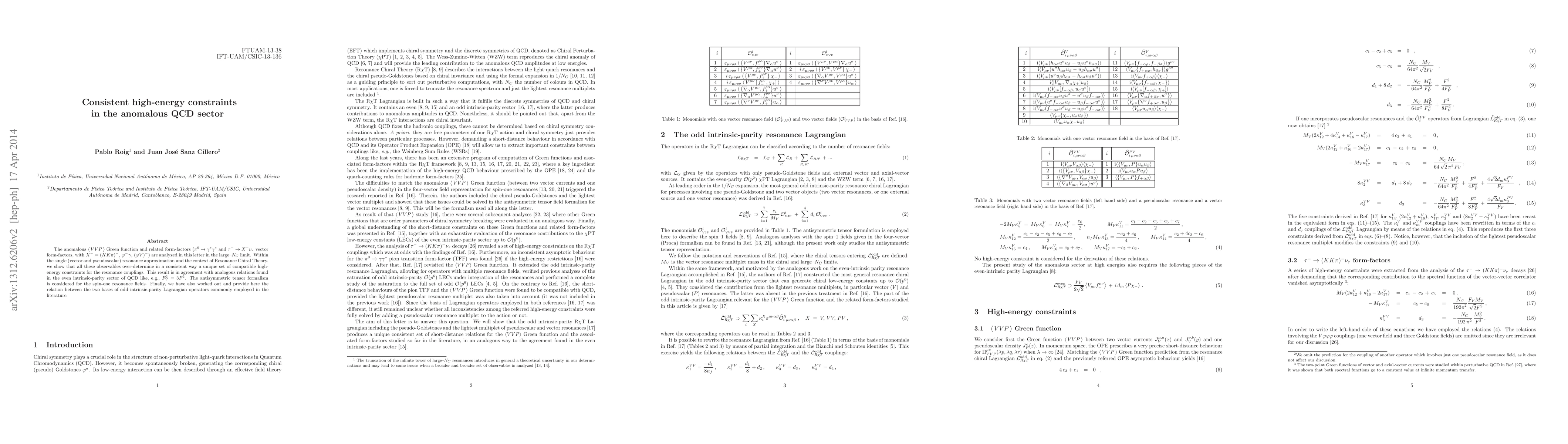 Researchers found consistent high-energy constraints for QCD sector observables that agree with analogous relations in other sectors of QCD, using Resonance Chiral Theory and a unique set of resonance couplings.