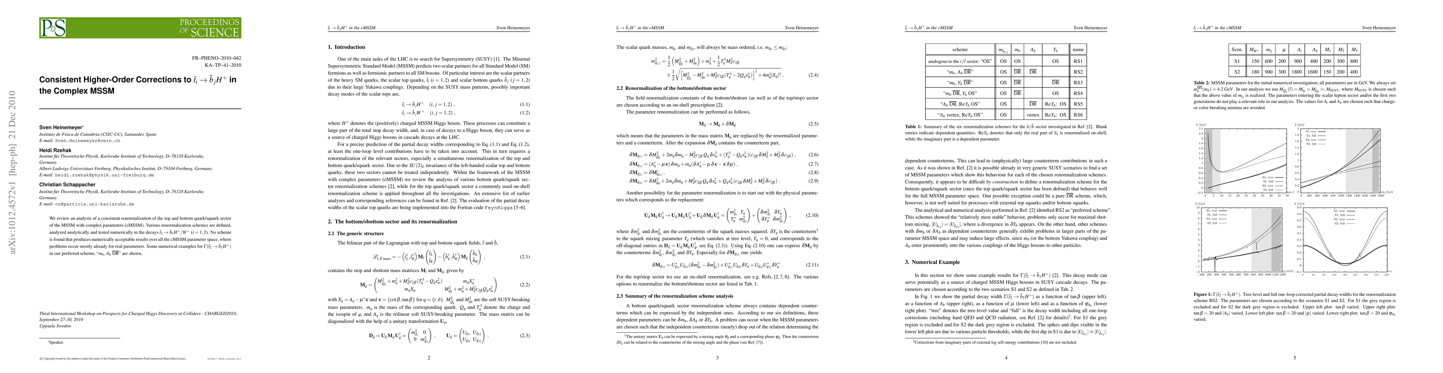 We review an analysis of a consistent renormalization of the top and bottom quark/squark sector of the MSSM with complex parameters (cMSSM). Various renormalization schemes are defined, analyzed analytically and tested numerically in the decays Stop_2 -> Sbottom_i H^+/W^+ (i = 1,2). No scheme is found that produces numerically acceptable results over all the cMSSM parameter space, where problems occur mostly already for real parameters. Some numerical examples for Gamma(Stop_2 -> Sbottom_1 H^+) in our preferred scheme, "m_b, A_b DRbar" are shown.
